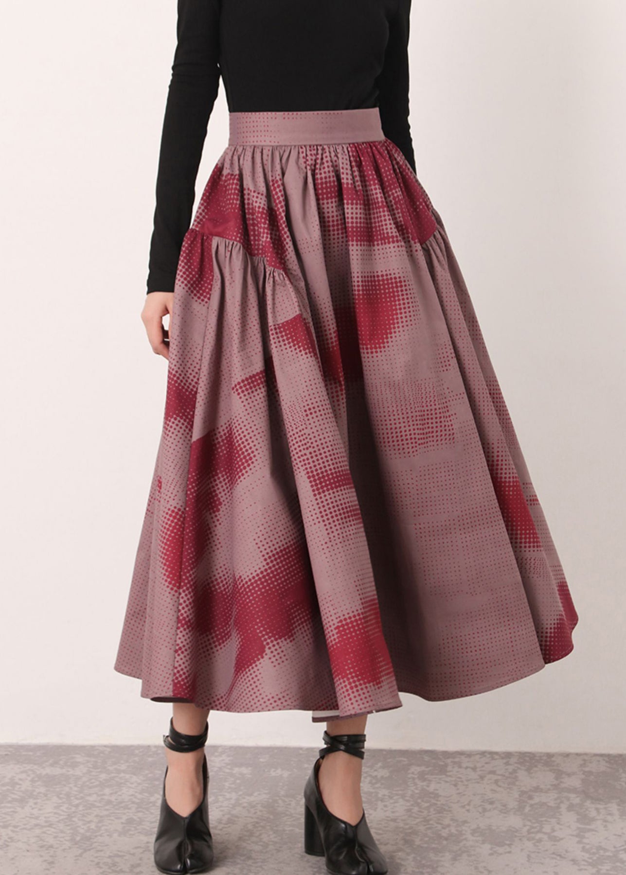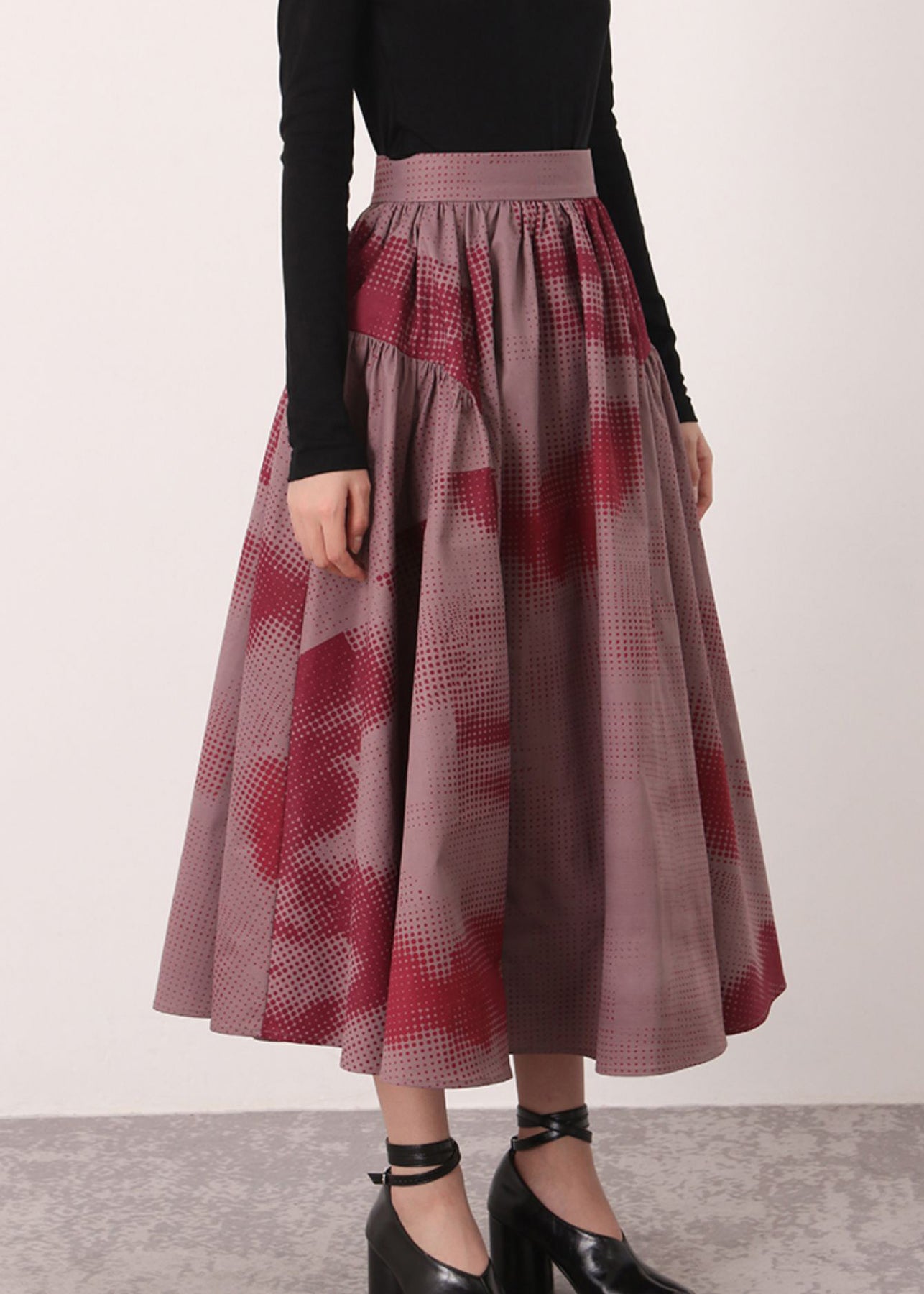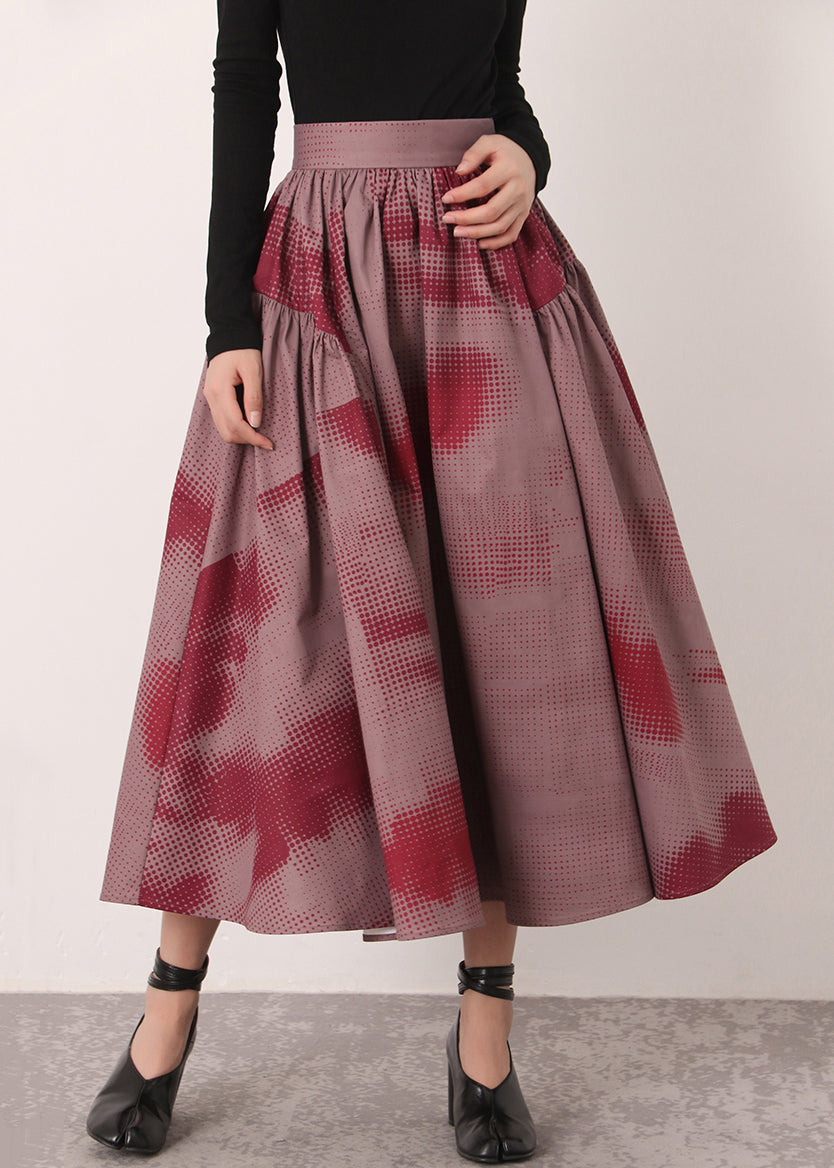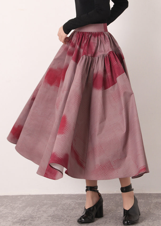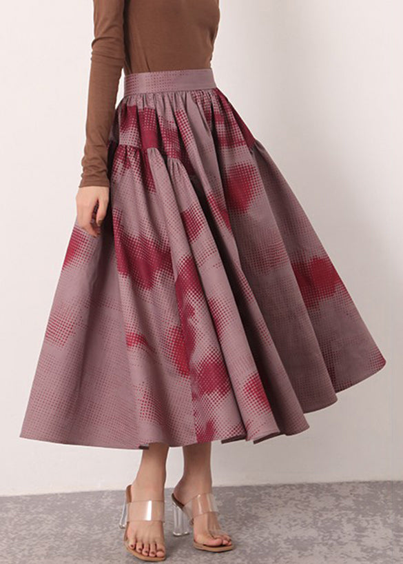 Vintage Red Print High Waist Cotton Skirts Spring