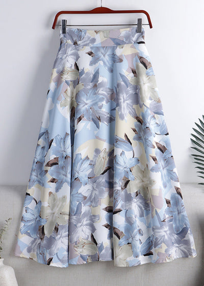 Chic Blue Print High Waist Chiffon A Line Skirt Summer
