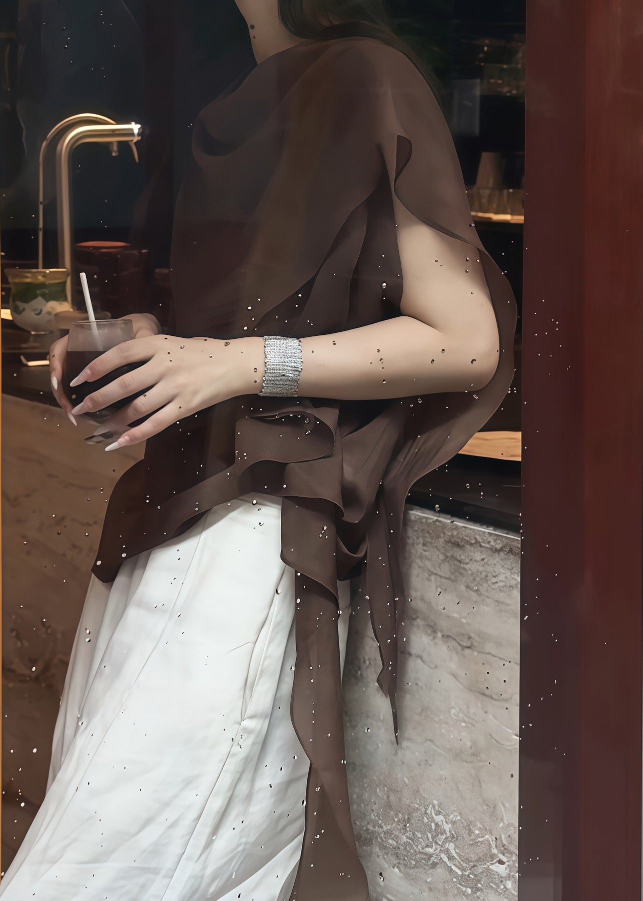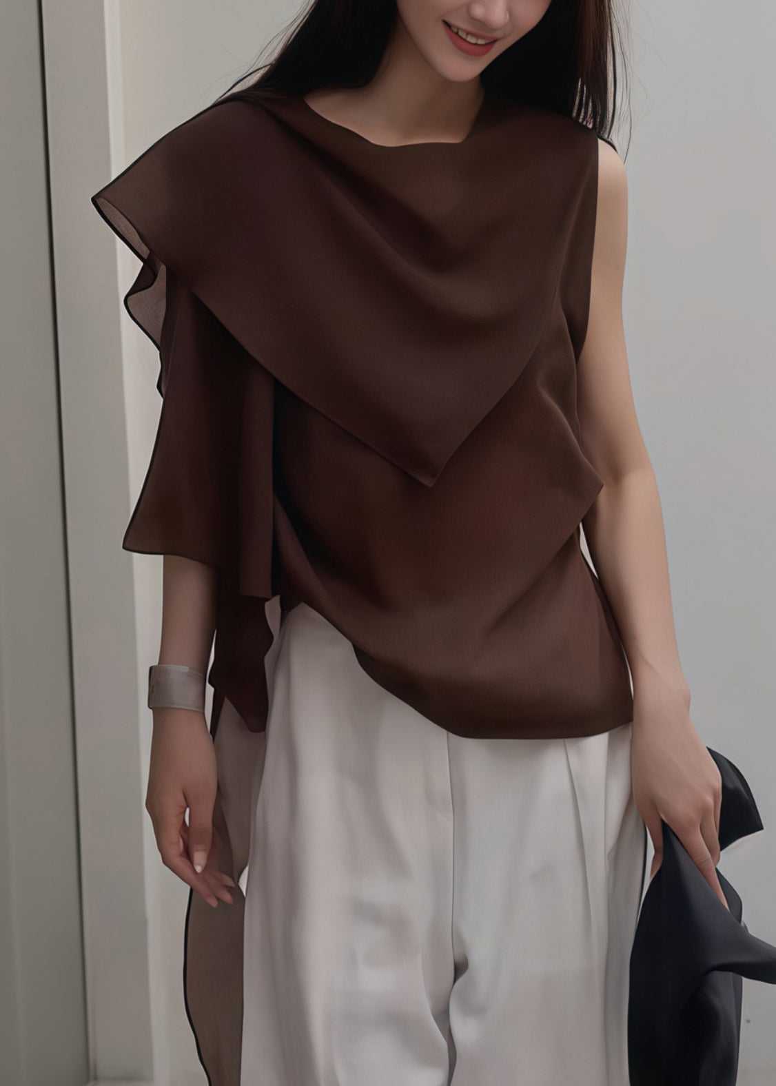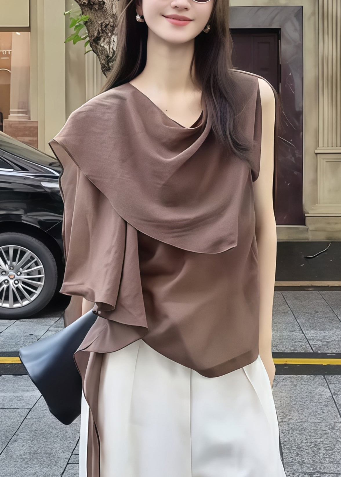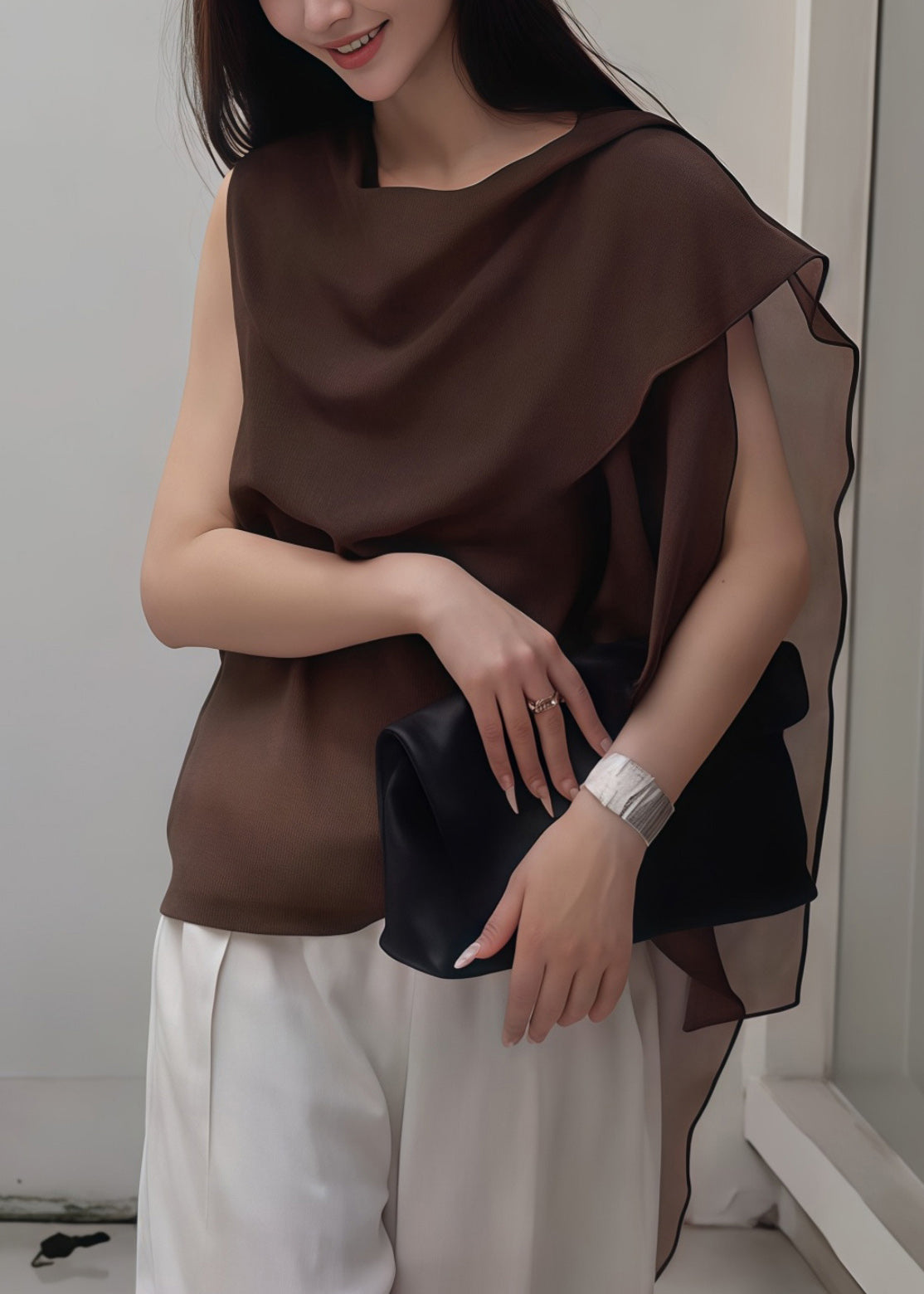 Women Brown Asymmetrical Chiffon Tank Tops Summer