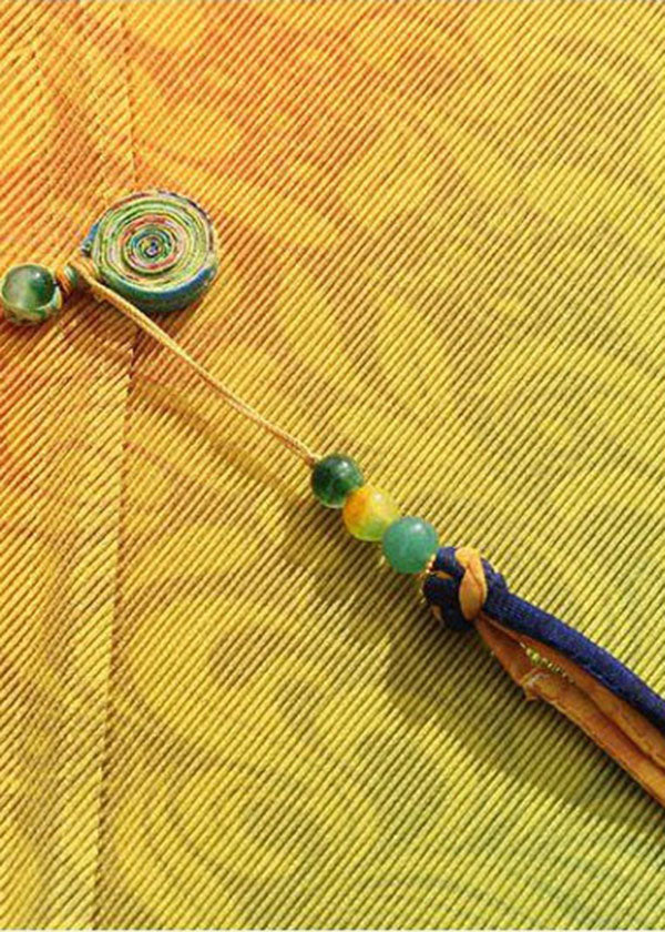 Bohemian Blue Gradient Color O-Neck Tassel Wrinkled Silk Dresses Short Sleeve