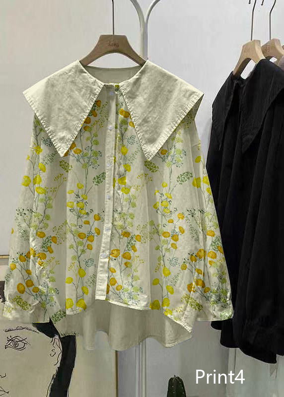 Bohemian Print2 Peter Pan Collar Button asymmetrical design Fall Long sleeve Top