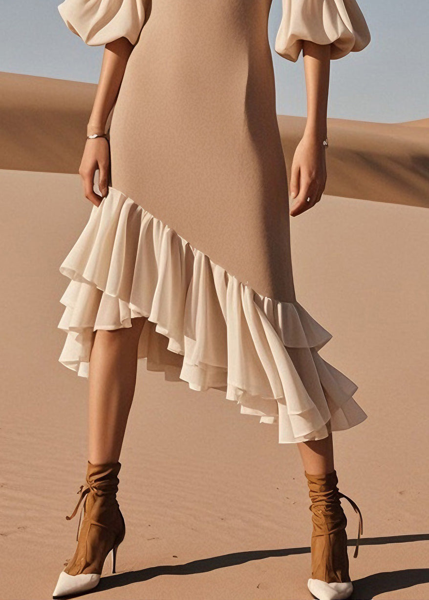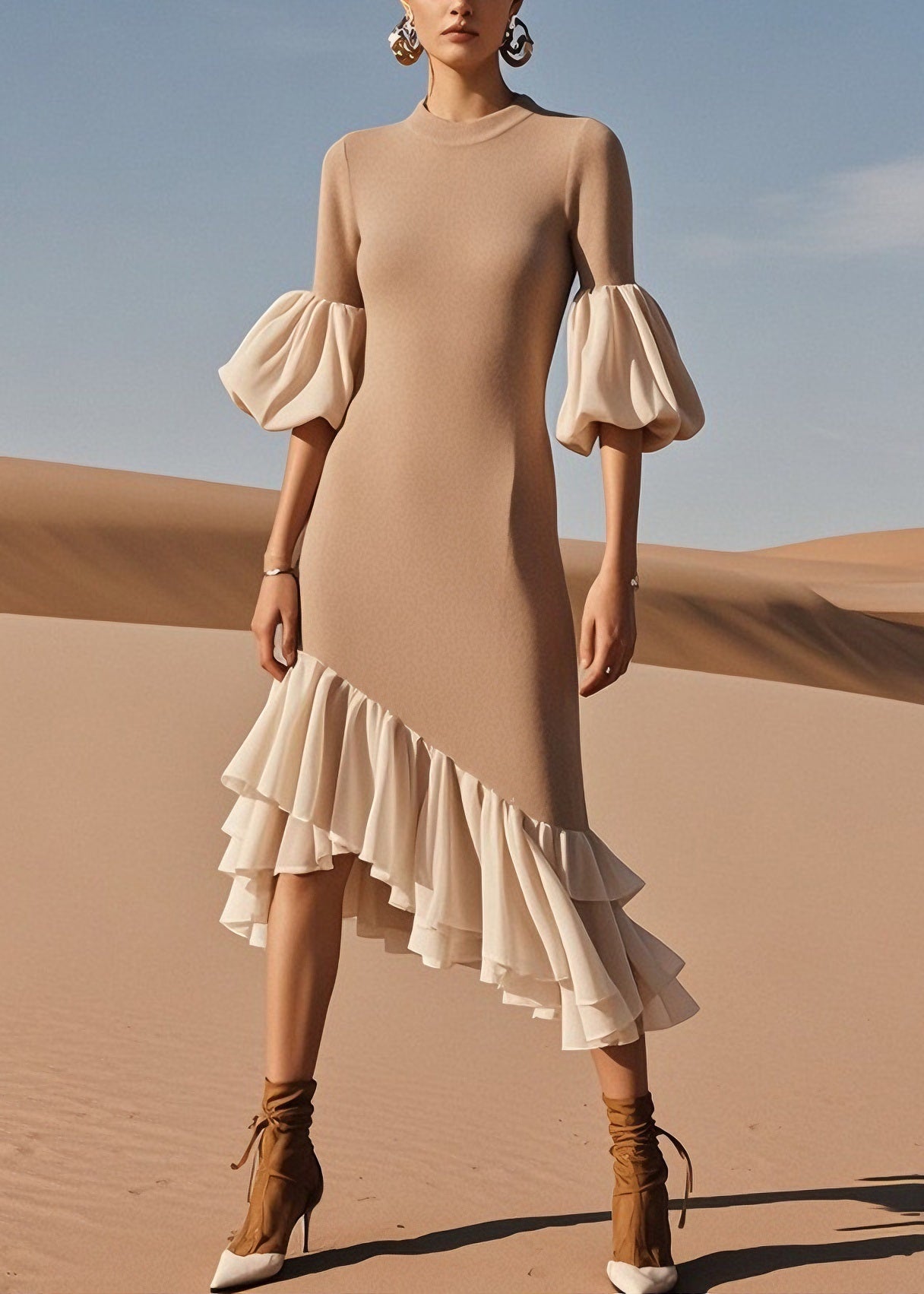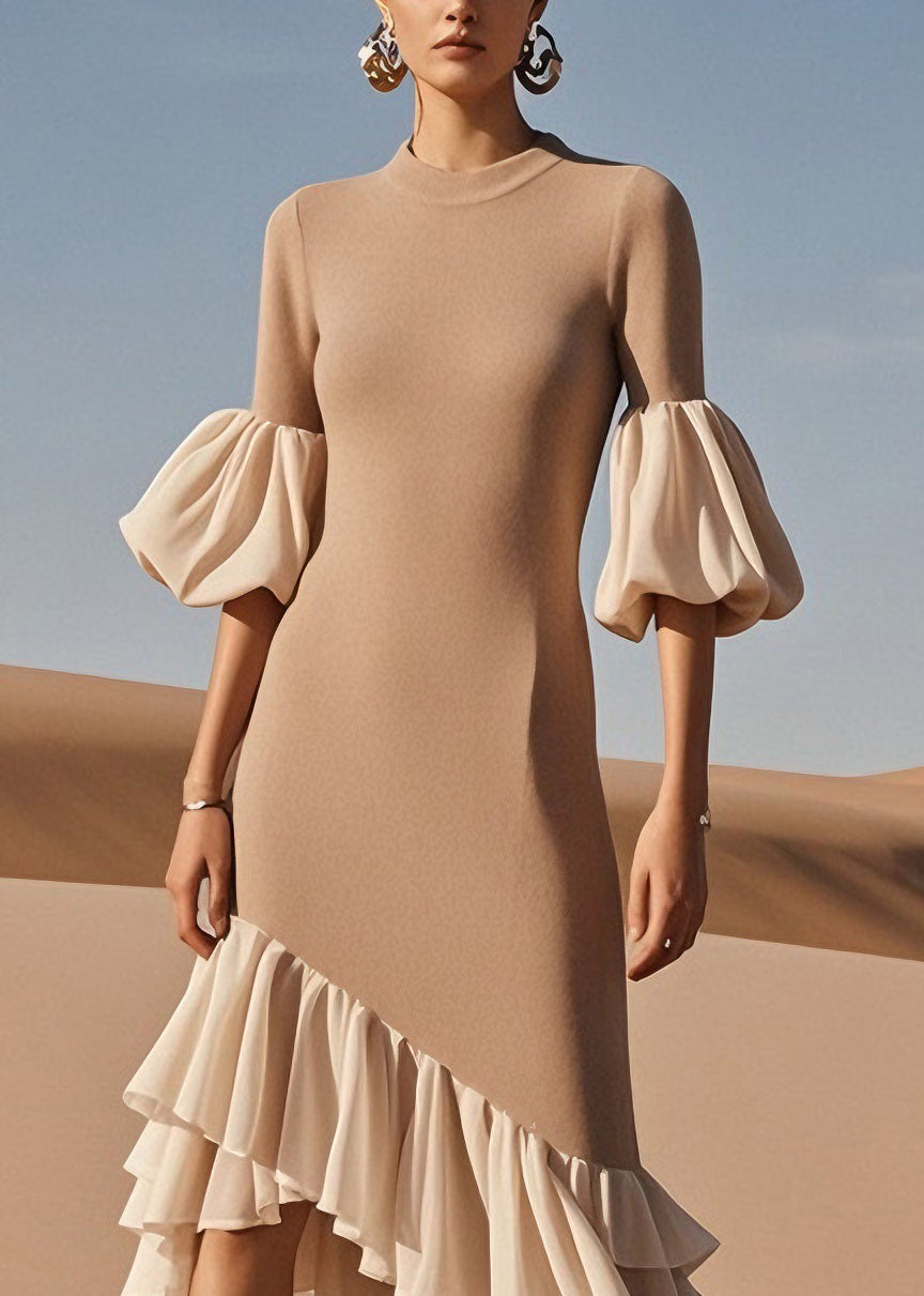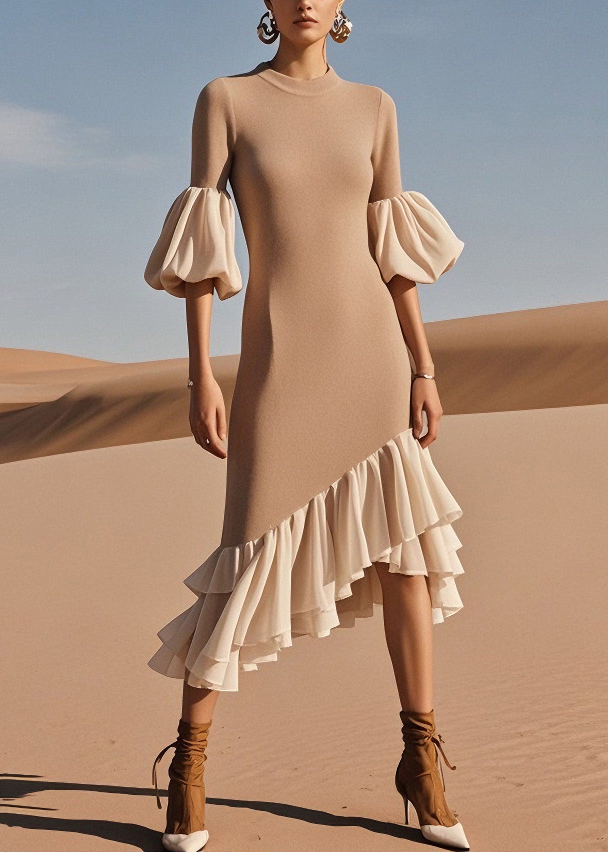 Stylish O Neck Ruffled Patchwork Knit Sweater Dress Spring