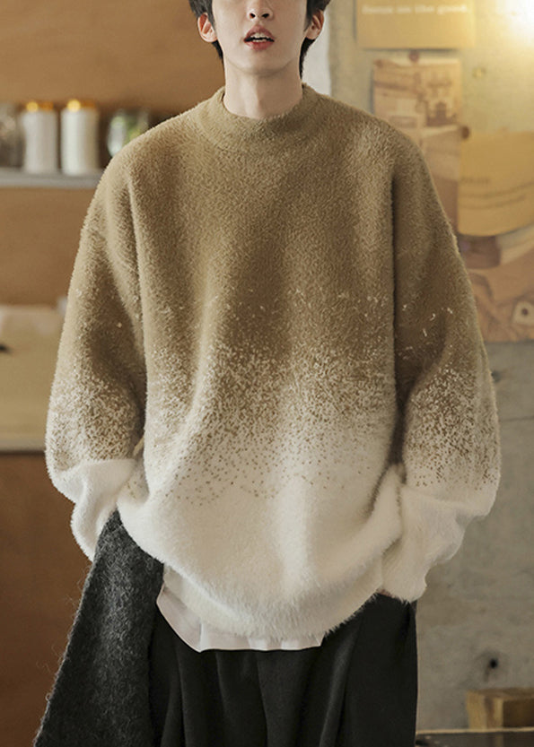 Warm Khaki Gradient Color Original Design Thick Knit Mens Sweaters