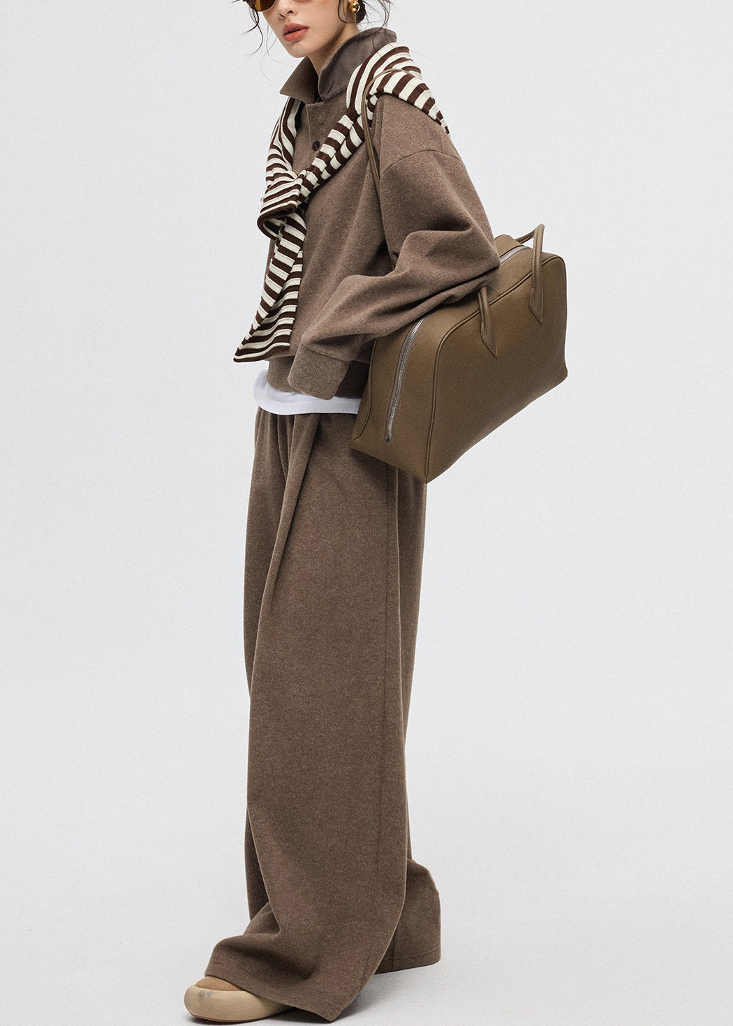 Casual Coffee Peter Pan Collar Button Cashmere Two Piece Set Winter