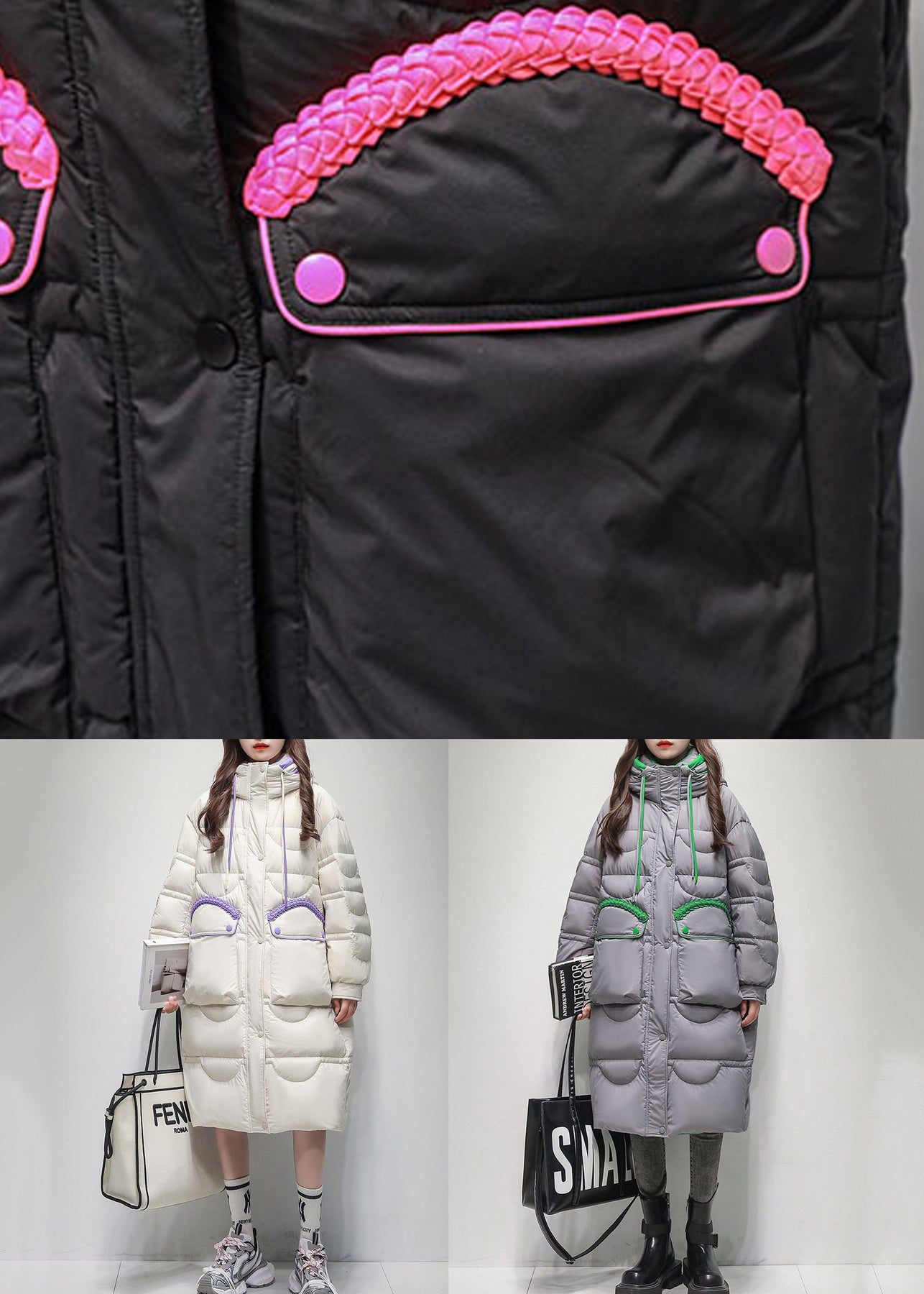 Grey Button Pockets Duck Down Winter Down Long Coat Hooded