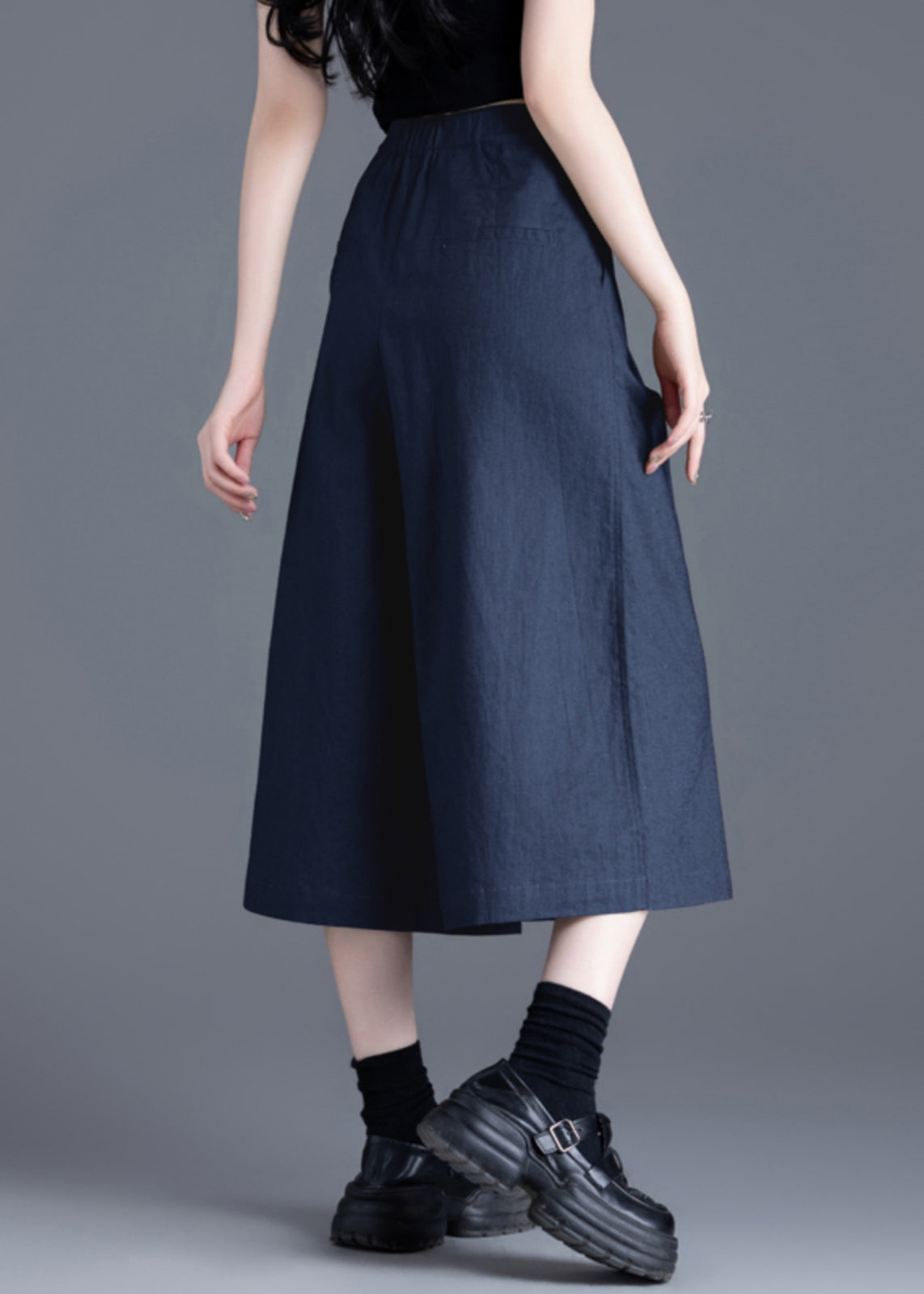 Italian Navy High Waist Linen Crop Pants Skirts Summer