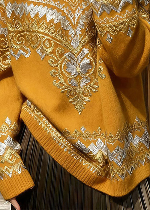 Italian Yellow O Neck Print Cozy Knit Sweater Tops Spring