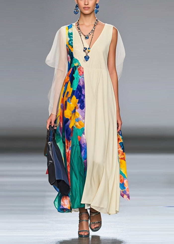 Women White Asymmetrical Patchwork Chiffon Long Dress Summer