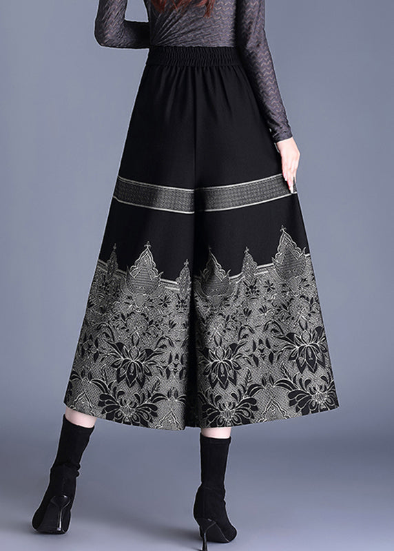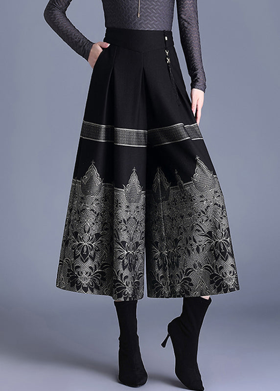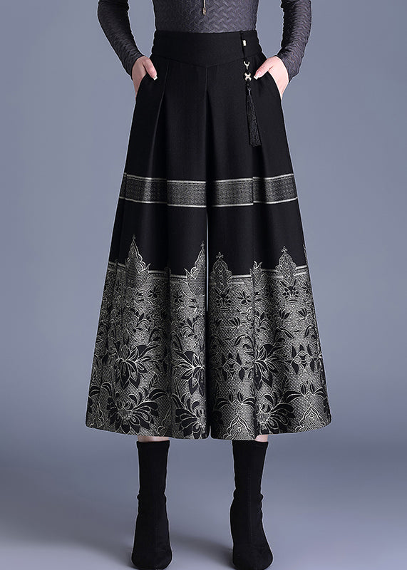 Jacquard Black High Waist Woolen Maxi Skirt Spring