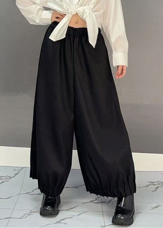 Plus Size Black Pockets Solid Wide Leg Pants Spring