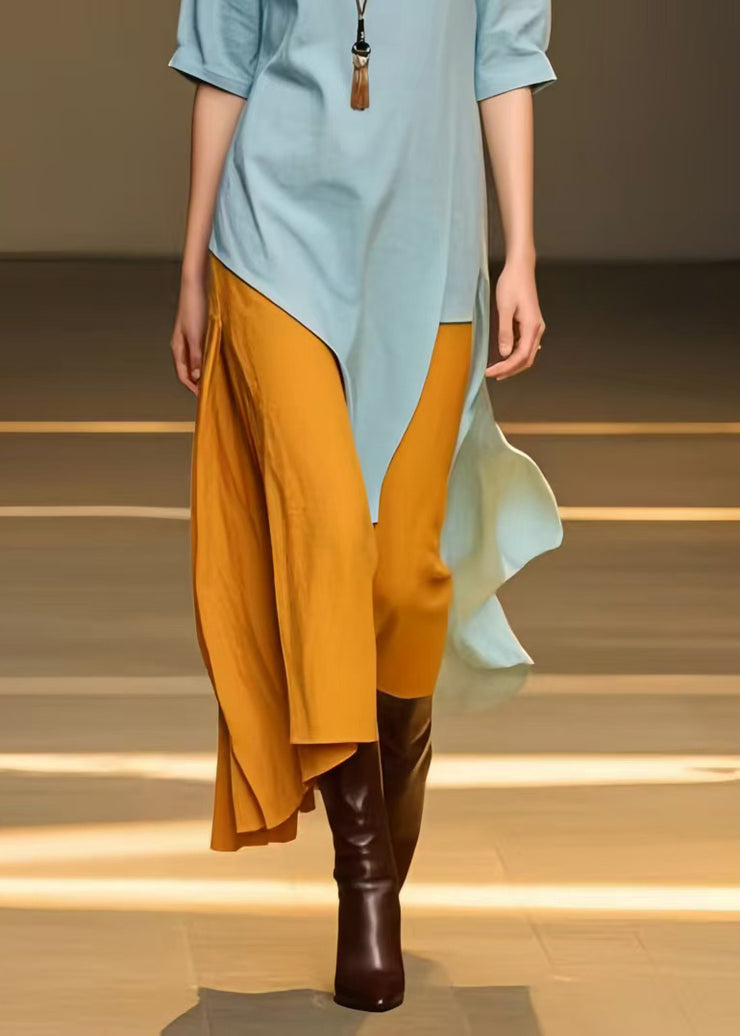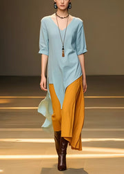 Plus Size Sky Blue Asymmetrical Patchwork Cotton Long Dress Summer