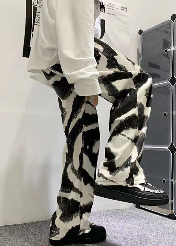 New Black Oversized Tie Dye Cotton Mens Pants Casual Clothing Spring