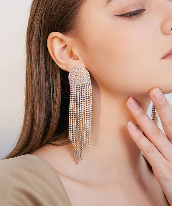 Beautiful Gold Zircon Tassels Silver Drop Earrings