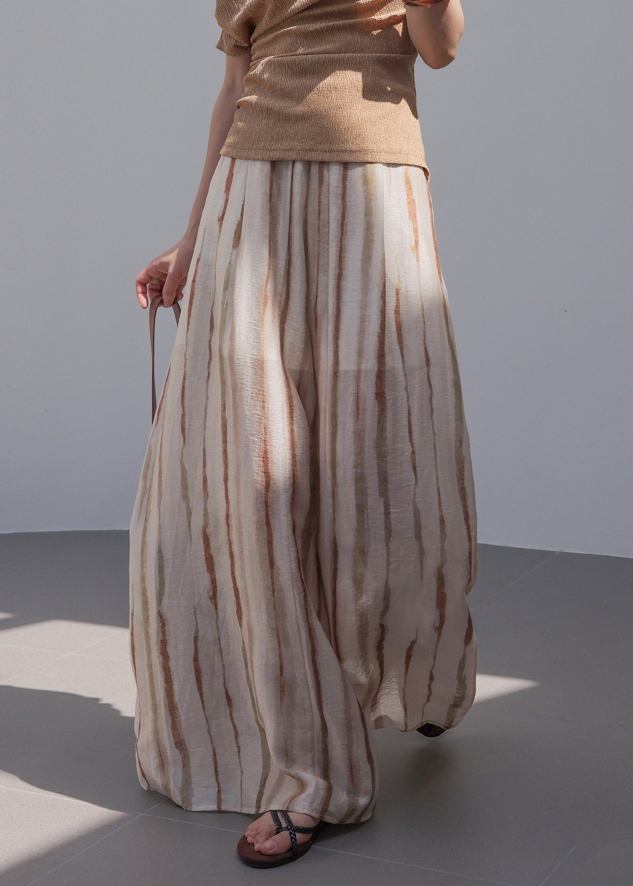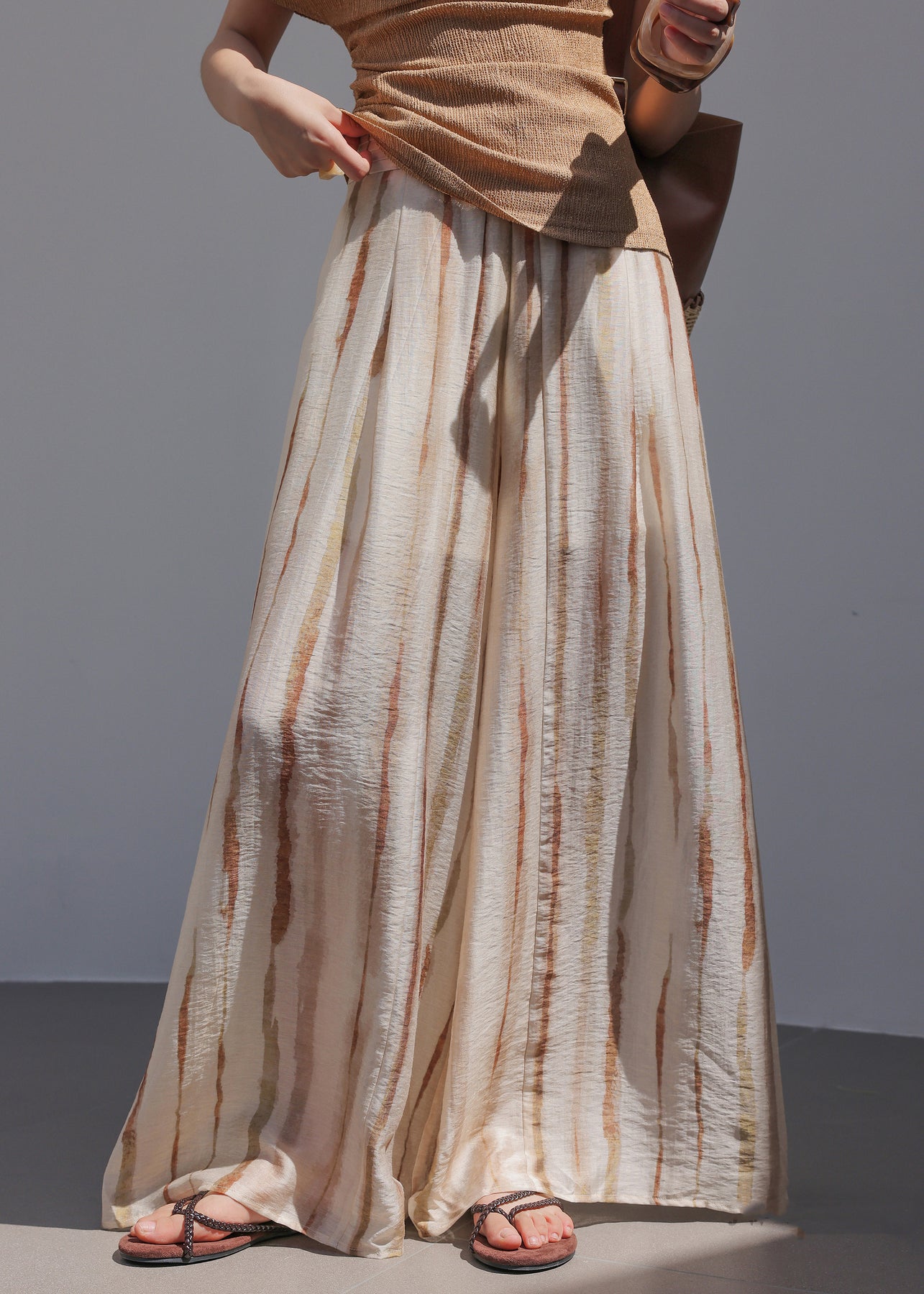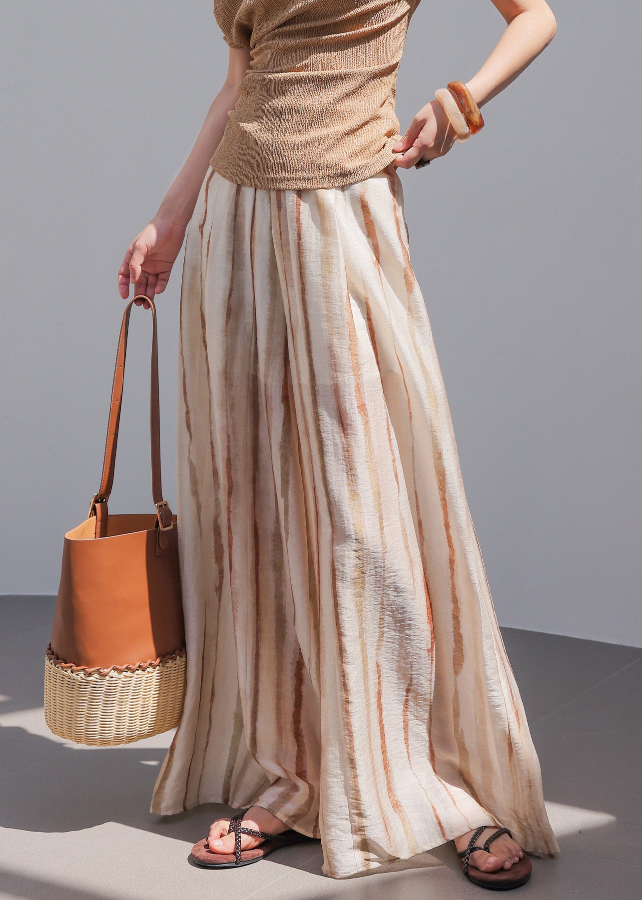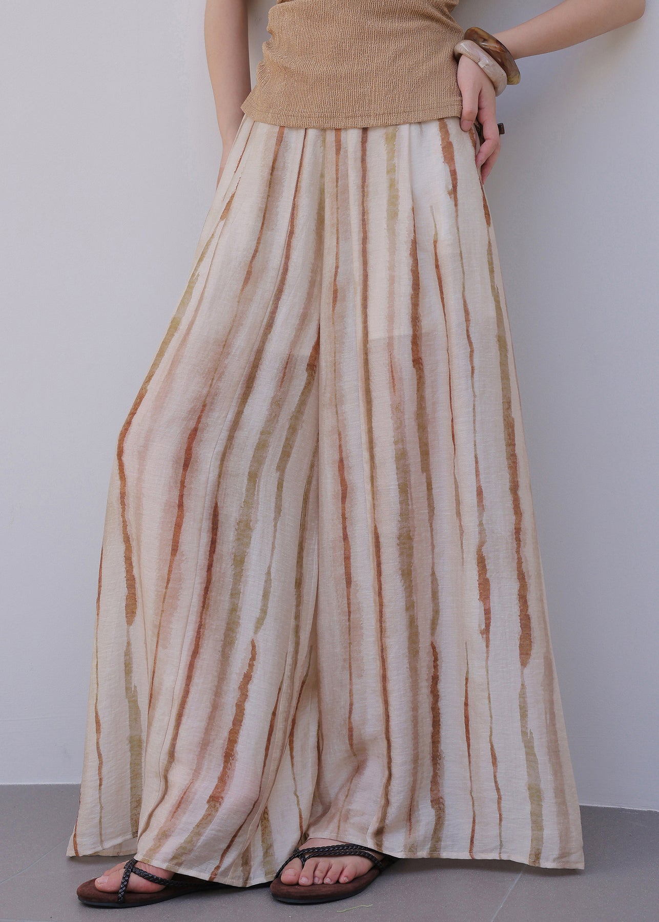 Natural Striped High Waist Wide Leg Pants Summer