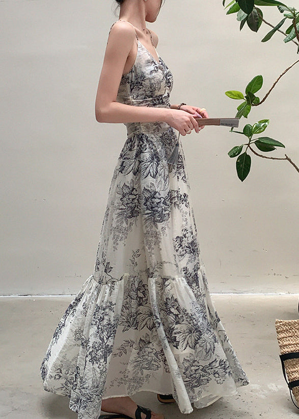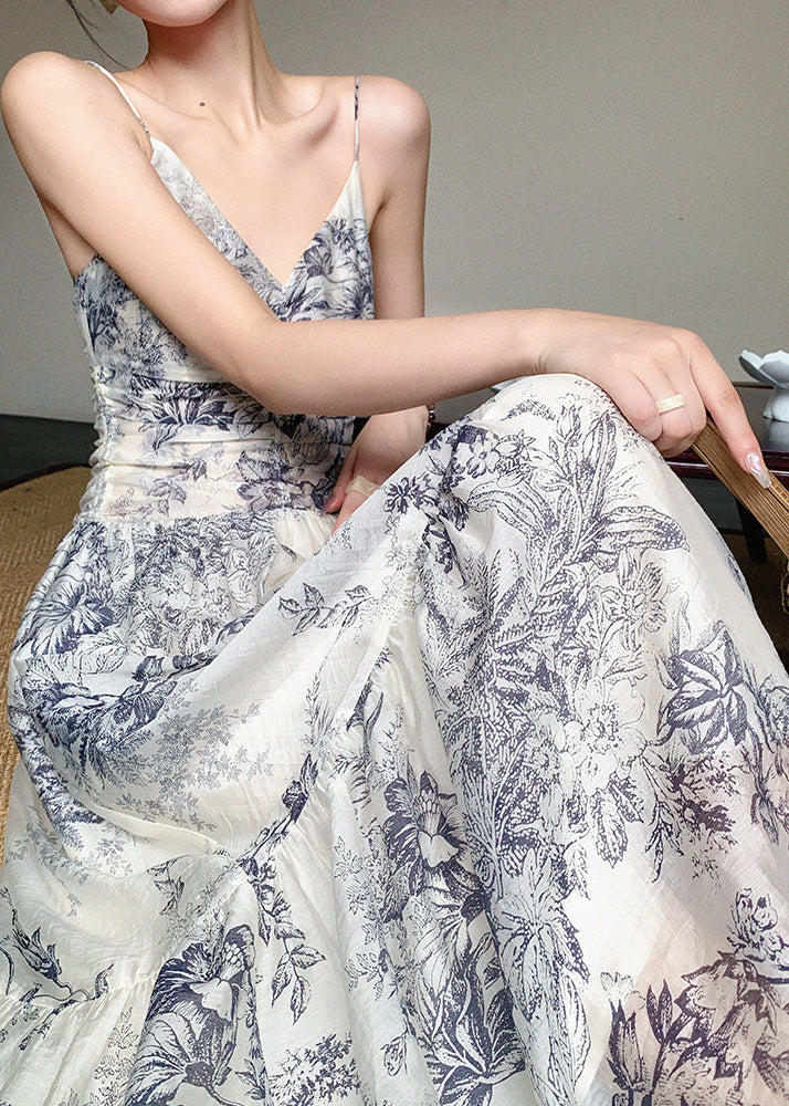 Slim Fit V Neck Print Long Spaghetti Strap Dress Sleeveless