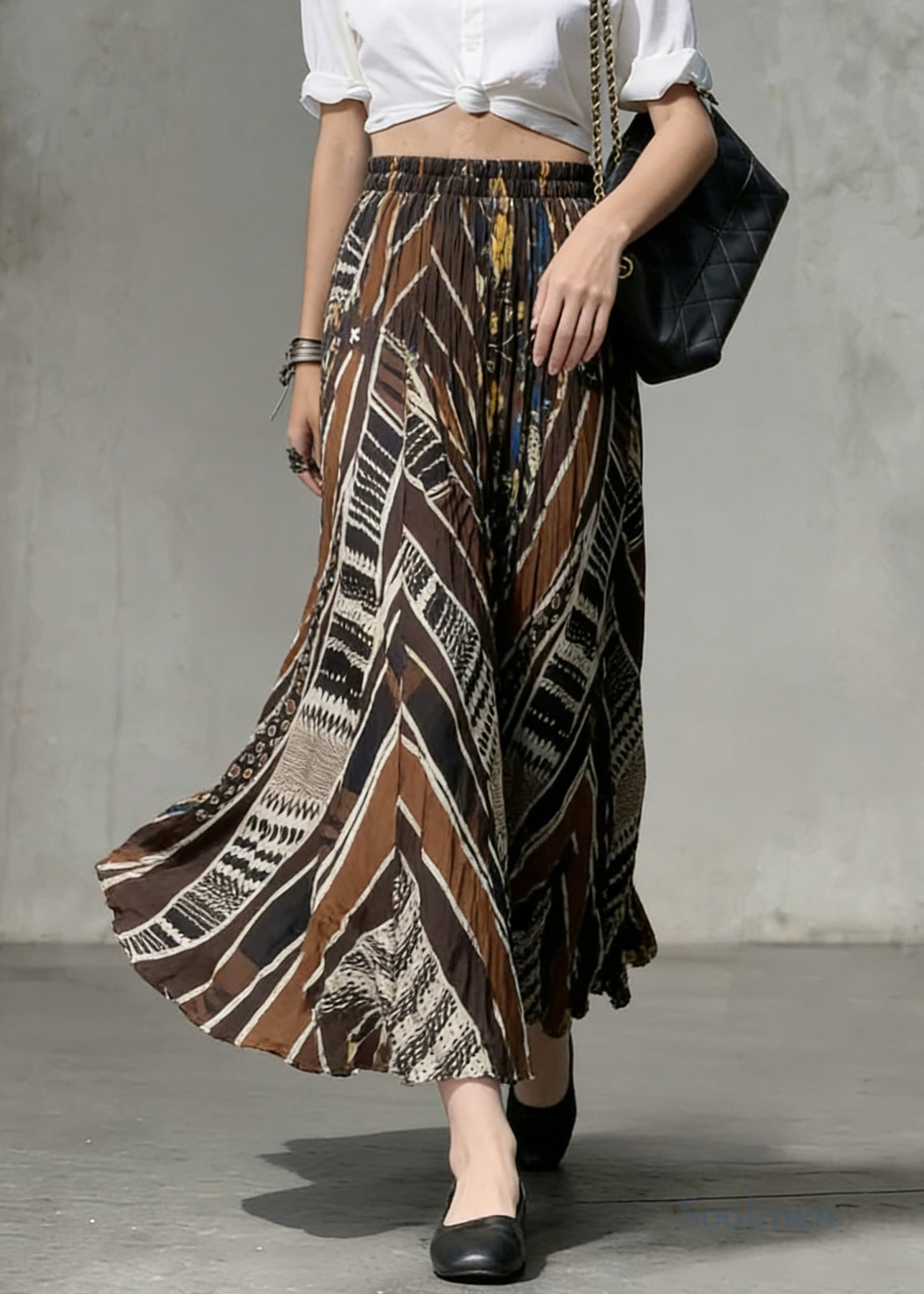 Casual Chocolate Flower Print Exra Large Hem Cotton Skirts Spring
