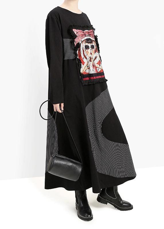 Edle schwarze Baumwollkleider Patchwork Rüschen Kleider