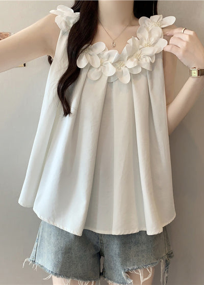 Blue Floral Decorated Cotton Tanks Oversized Sleeveless