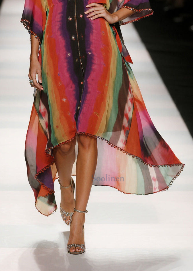 Chic Red Oversized Tie Dye Draping Chiffon Vacation Dresses Summer