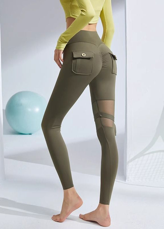 Slim Fit Army Green High Waist Patchwork Cotton Leggings Yoga Pants