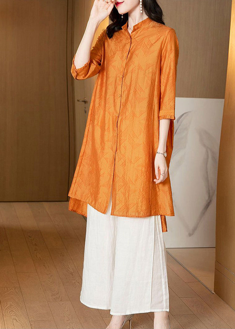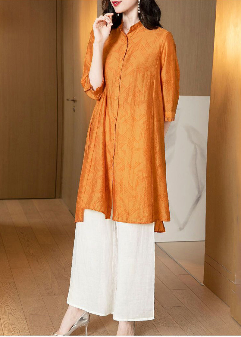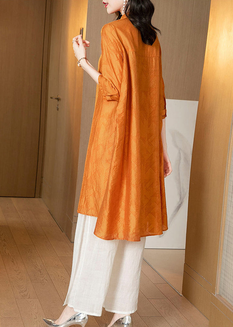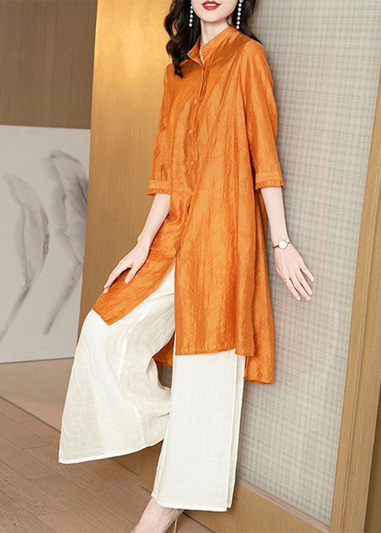 Women Yellow Stand Collar Oversized Silk Two Pieces Set Summer