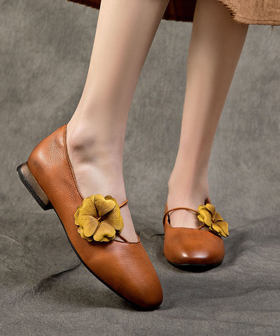 Brown Sandals Splicing Cowhide Leather Hollow Out Buckle Strap Floral