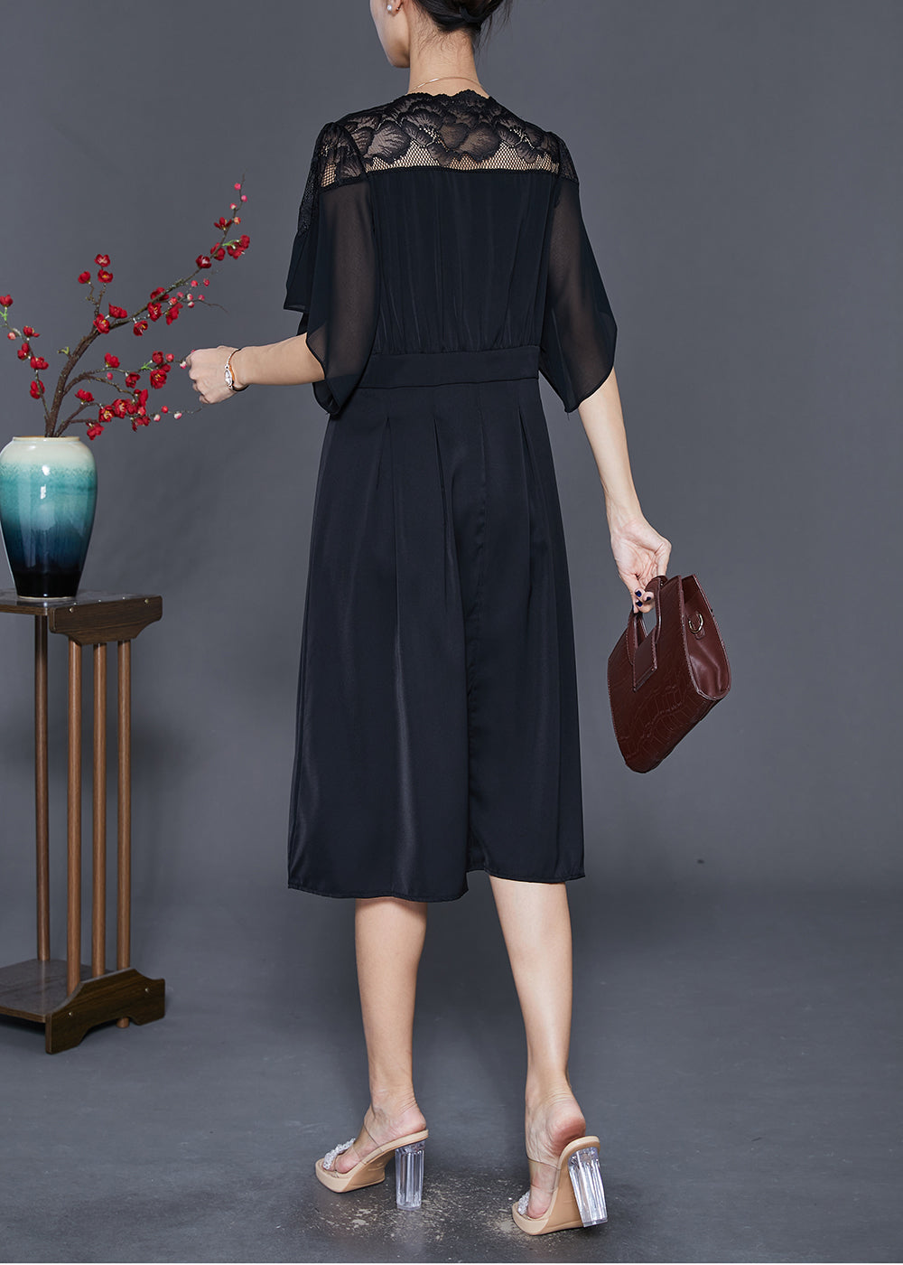 Simple Black V Neck Patchwork Chiffon Vacation Dresses Summer