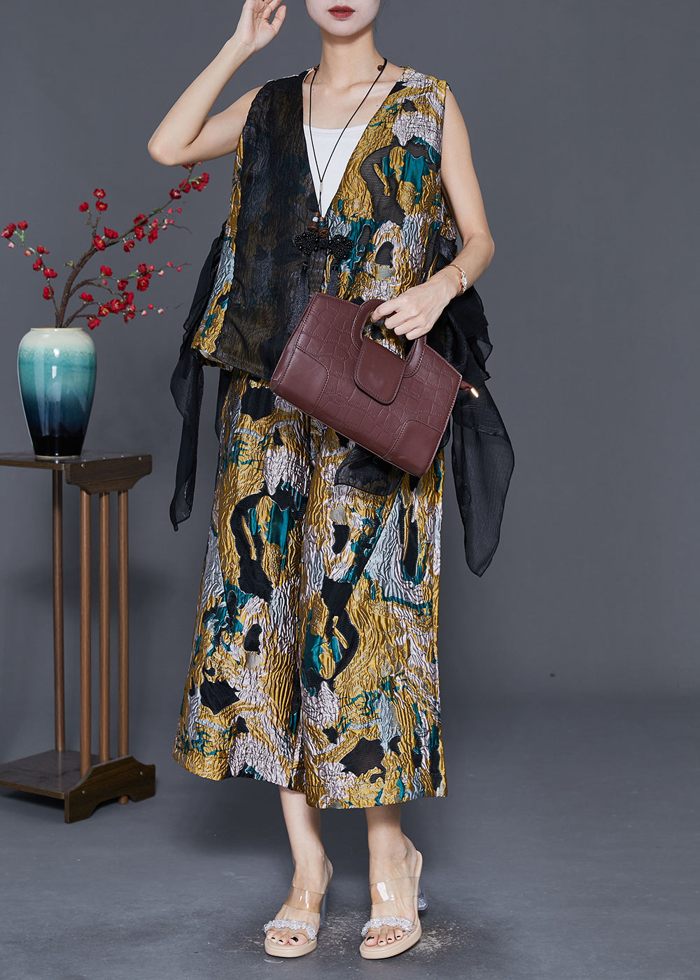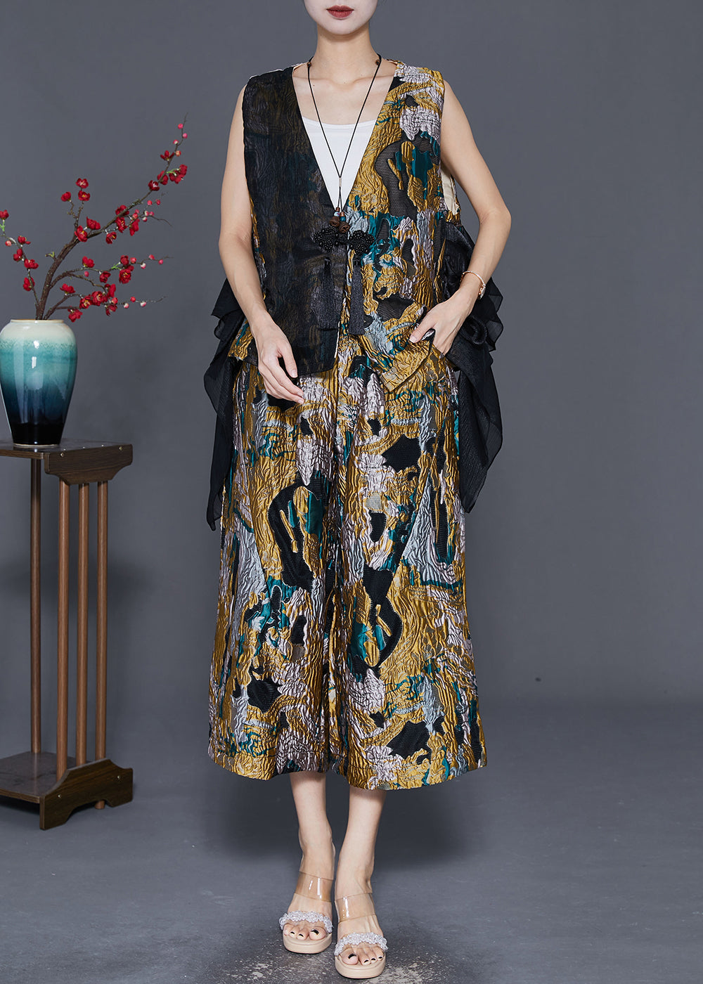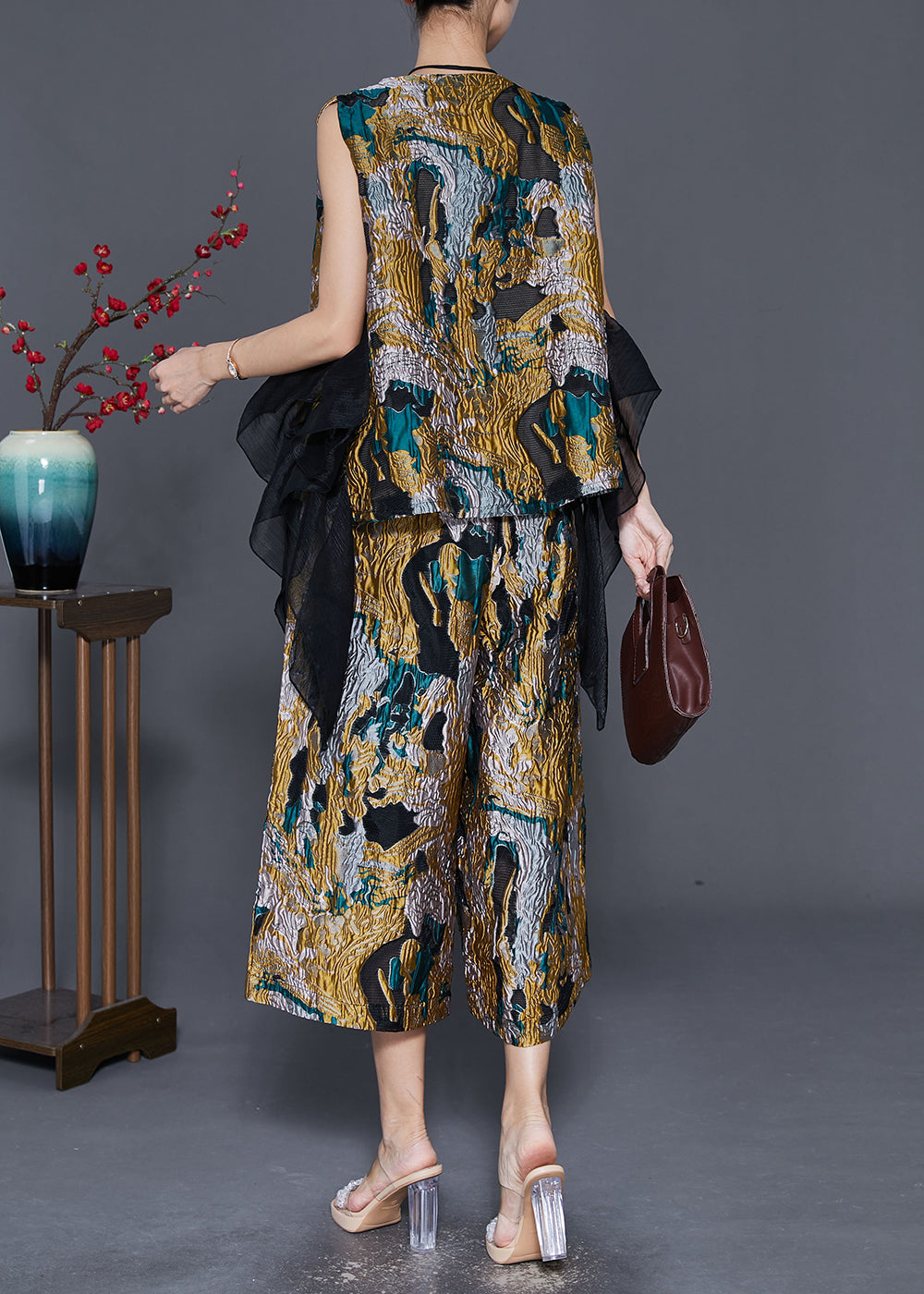 Unique Asymmetrical Patchwork Jacquard Two Pieces Set Fall