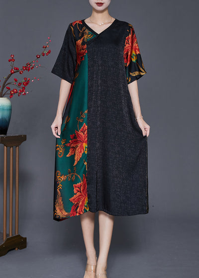 Elegant Colorblock V Neck Patchwork Silk Robe Dresses Summer