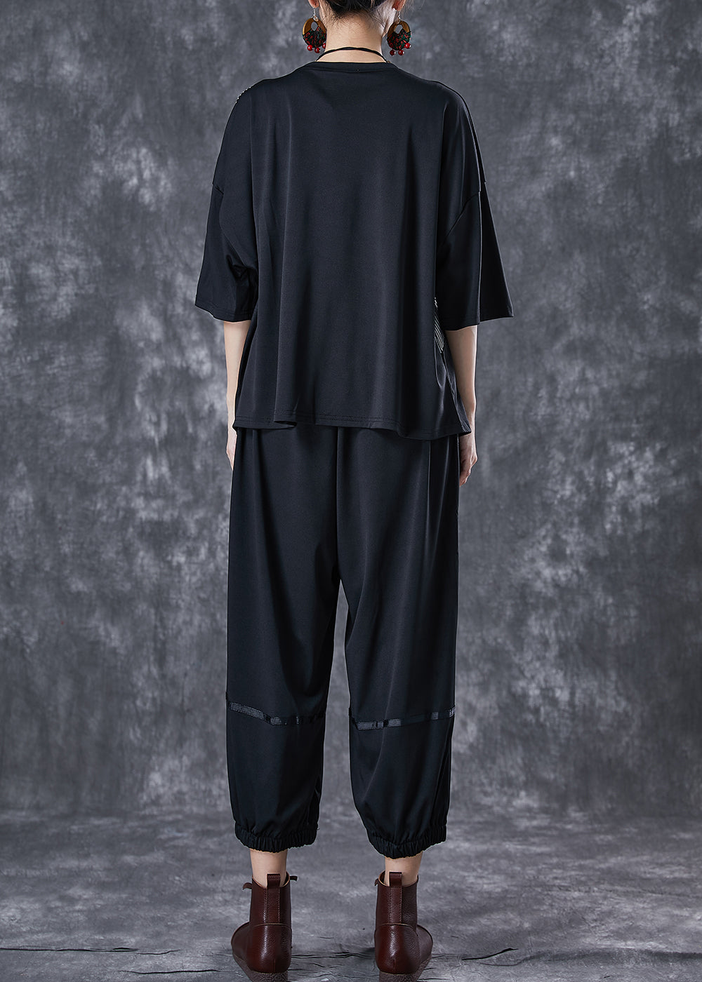 Boho Black Cinched Patchwork Striped Cotton Two Piece Set Summer
