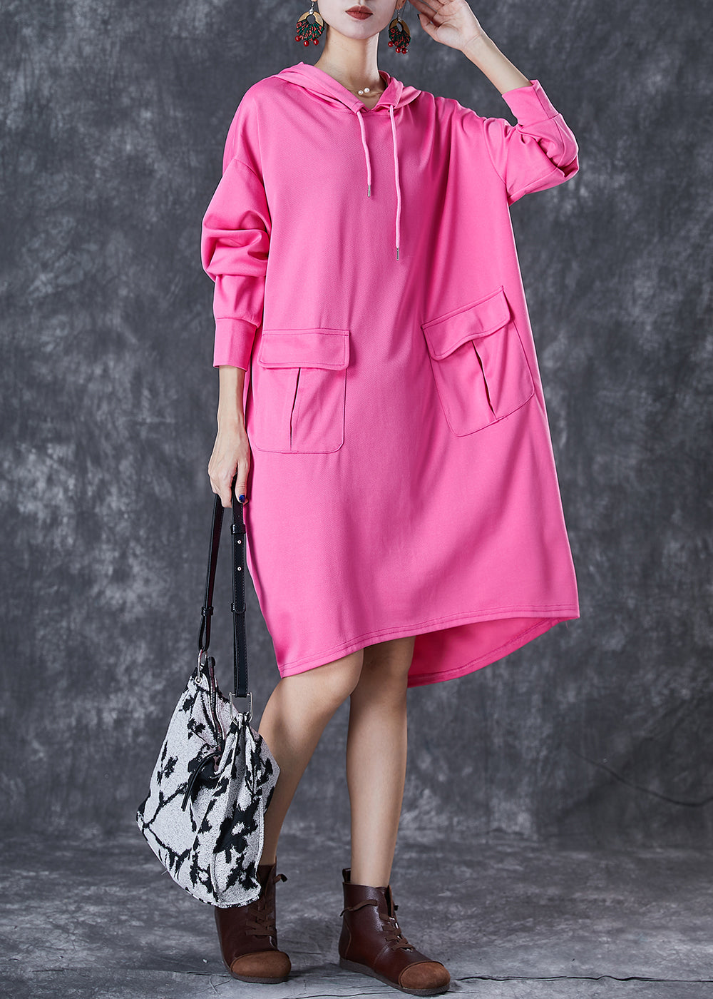 Organic Rose Oversized Pockets Cotton Sweatshirts Dress Fall