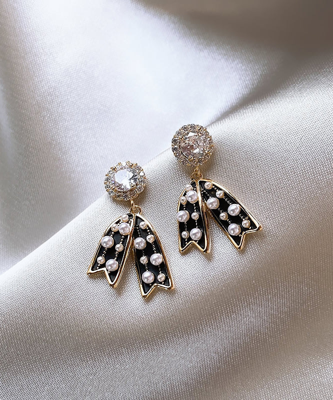 Vogue Black Copper Alloy Bow Pearl Drop Earrings