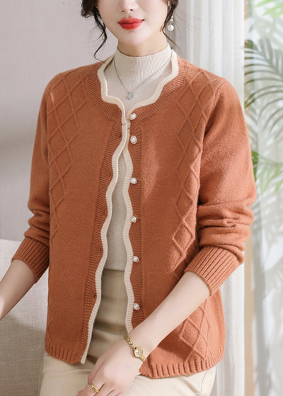 Organic Orange O-Neck Button Cotton Knit Cardigans Fall