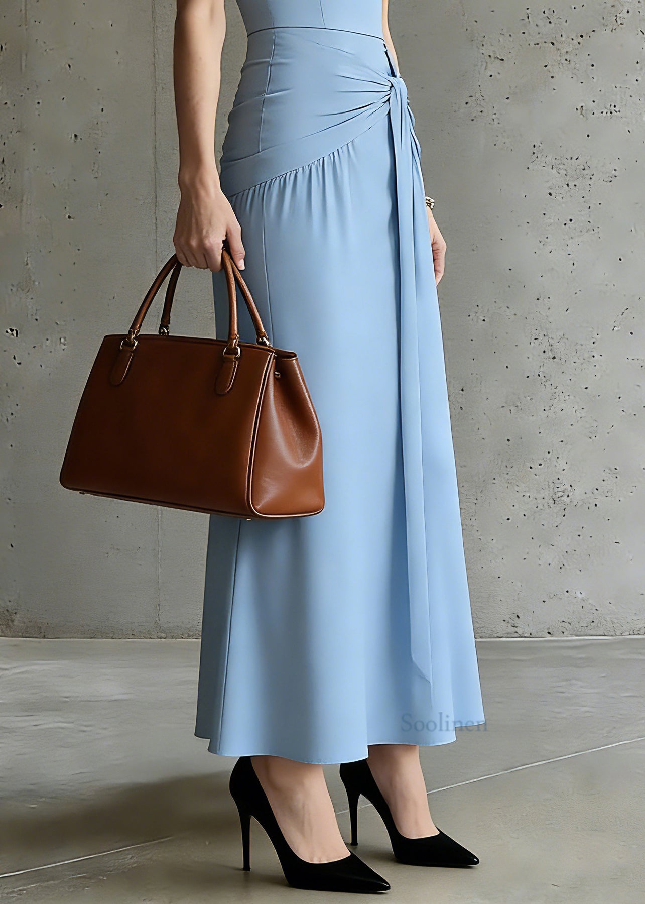 Slim Fit Blue U Neck Patchwork Tie Waist Solid Long Spaghetti Strap Dress Summer