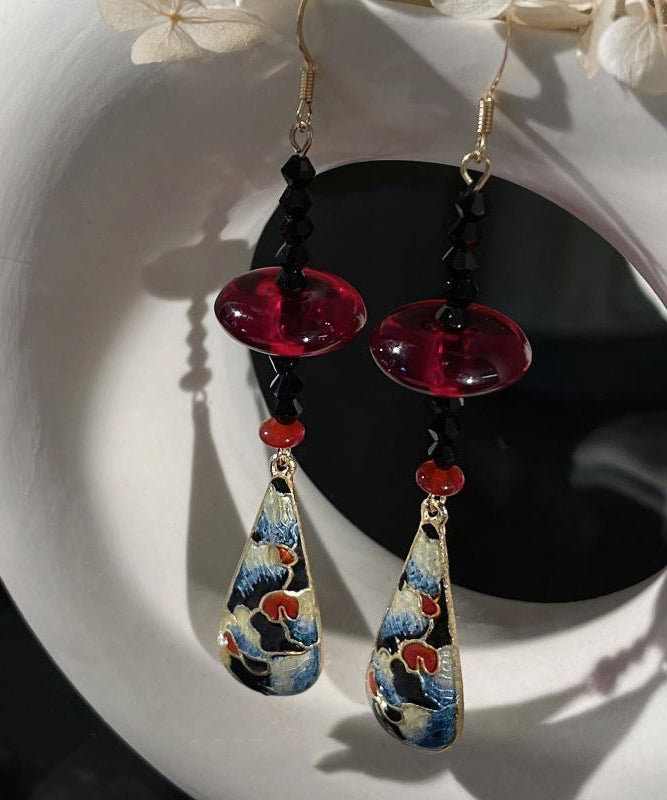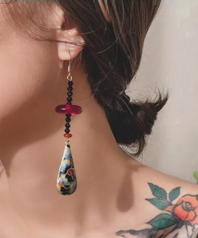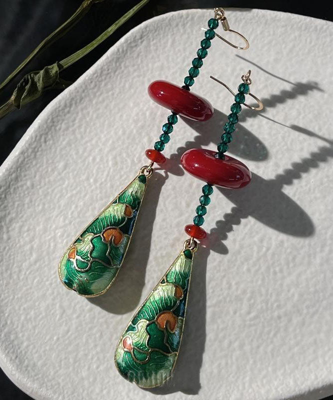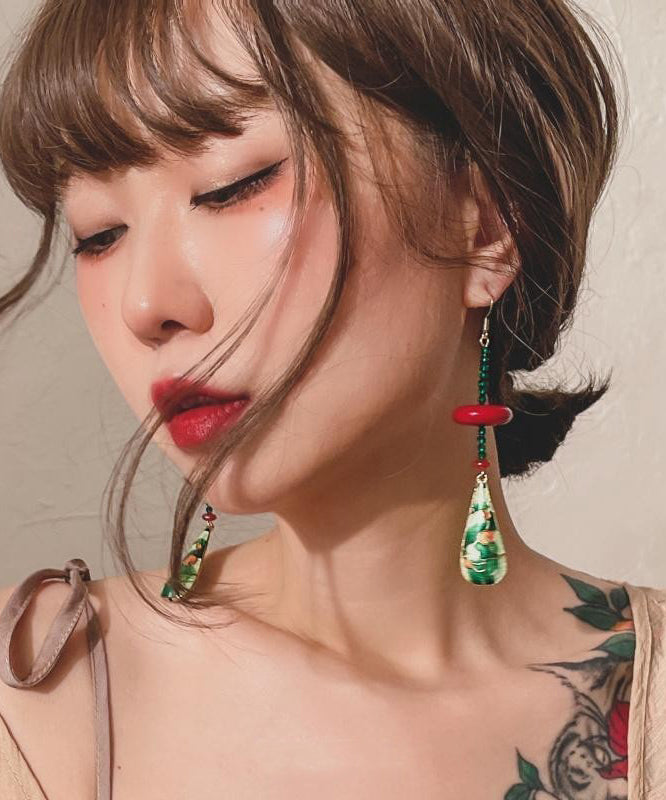 Chinese Style Green Copper Overgild Agate Resin Water Droplet Drop Earrings