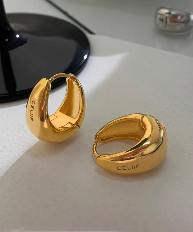 Fine Gold Metal Overgild Graphic Hoop Earrings