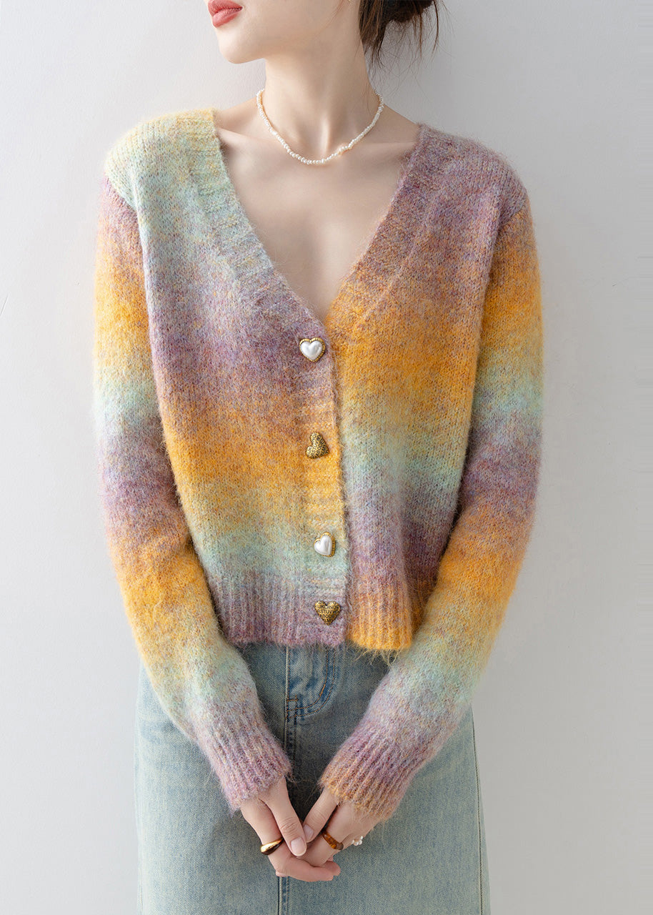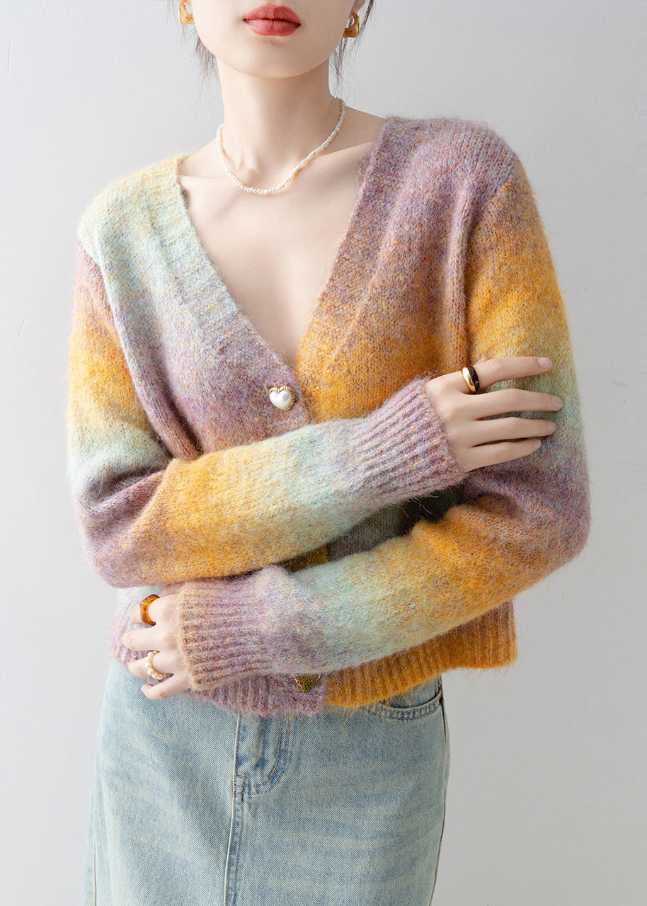 Italian Gradient Color V Neck Warm Knit Cardigan Winter