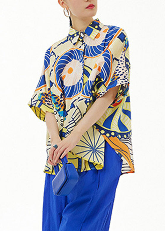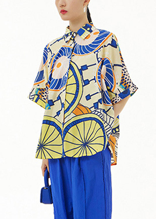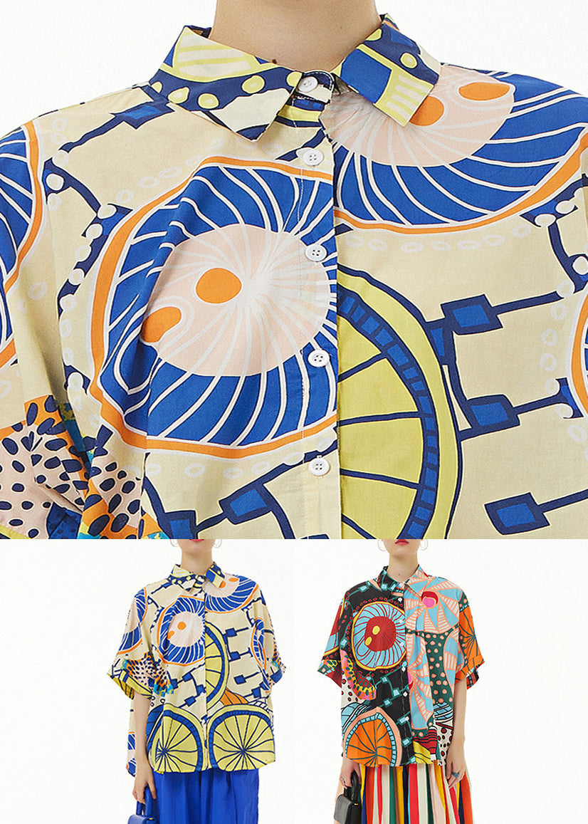 Bohemian White Peter Pan Collar Print Cotton Shirt Summer
