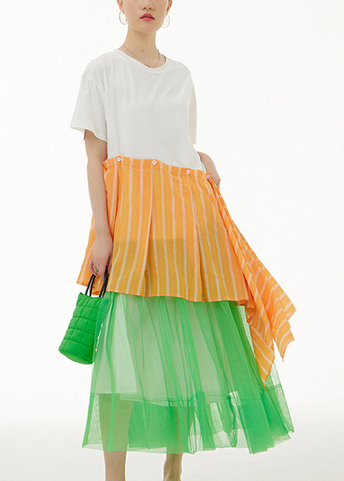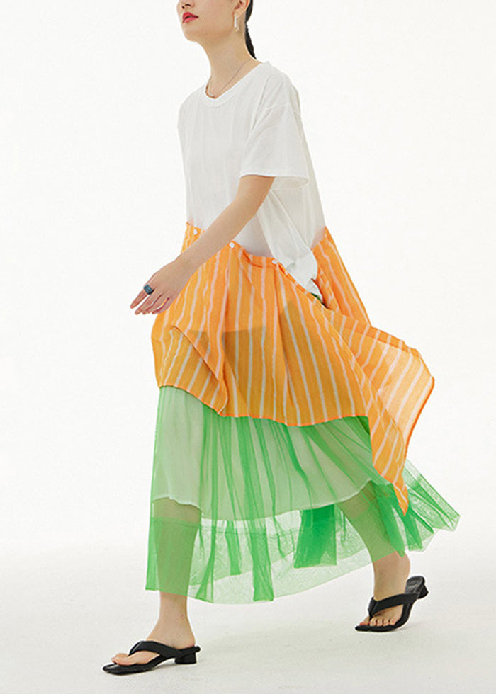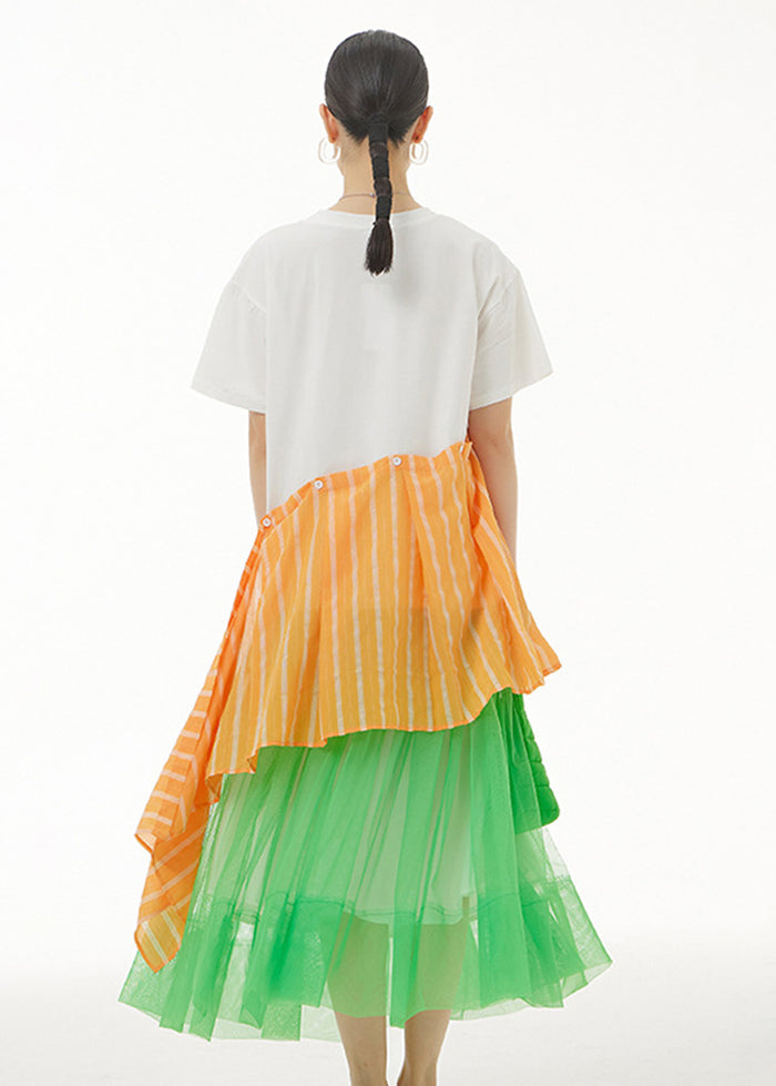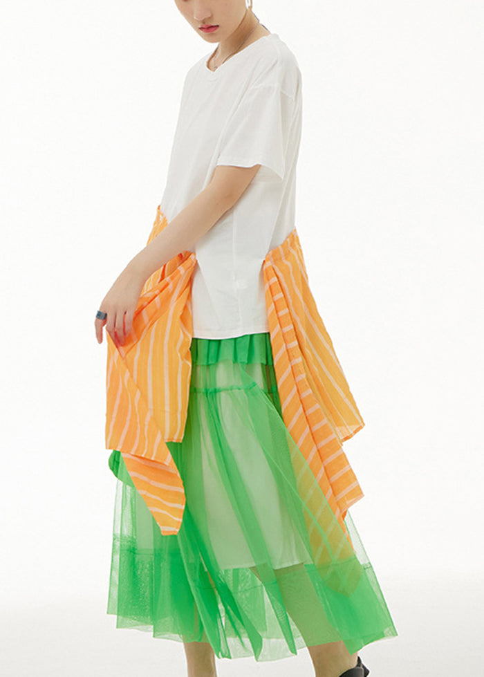 Modern White Asymmetrical Patchwork Tulle Cotton Long Tops Summer