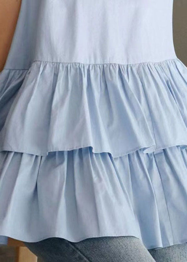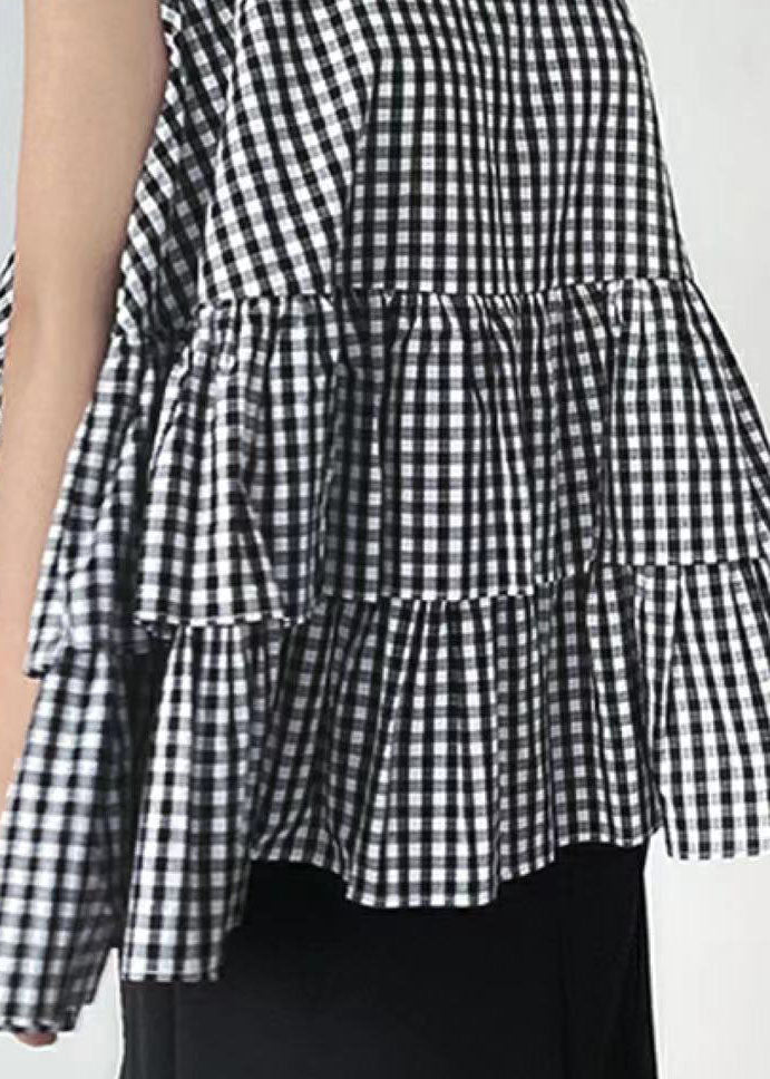 Organic Black O Neck Plaid Ruffled Cotton Shirts Sleeveless