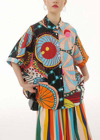 Printed Shirt printing short sleeve V Neck Waves Tops Black White Colour