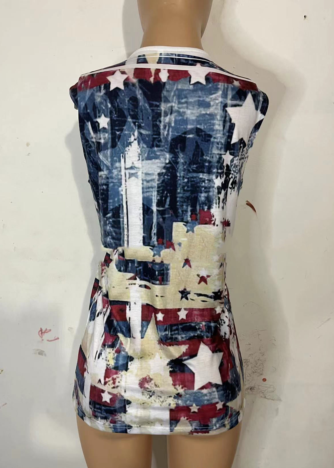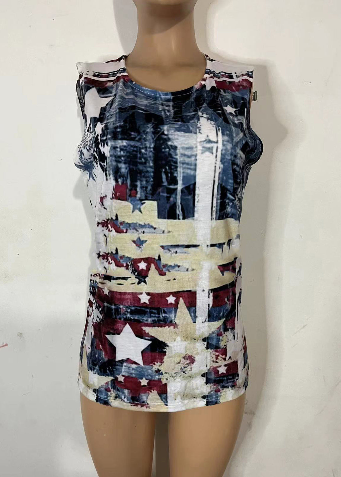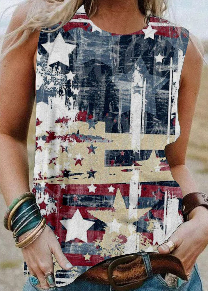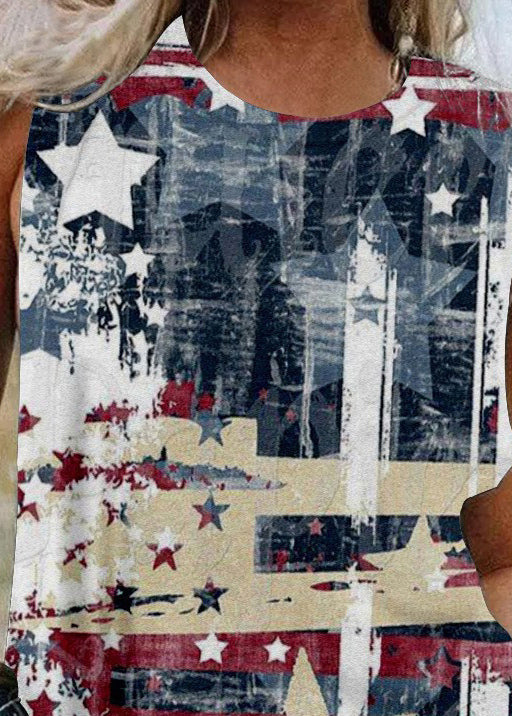 Beige Original Design Independence Day Print Baumwolltanks O-Neck Summer