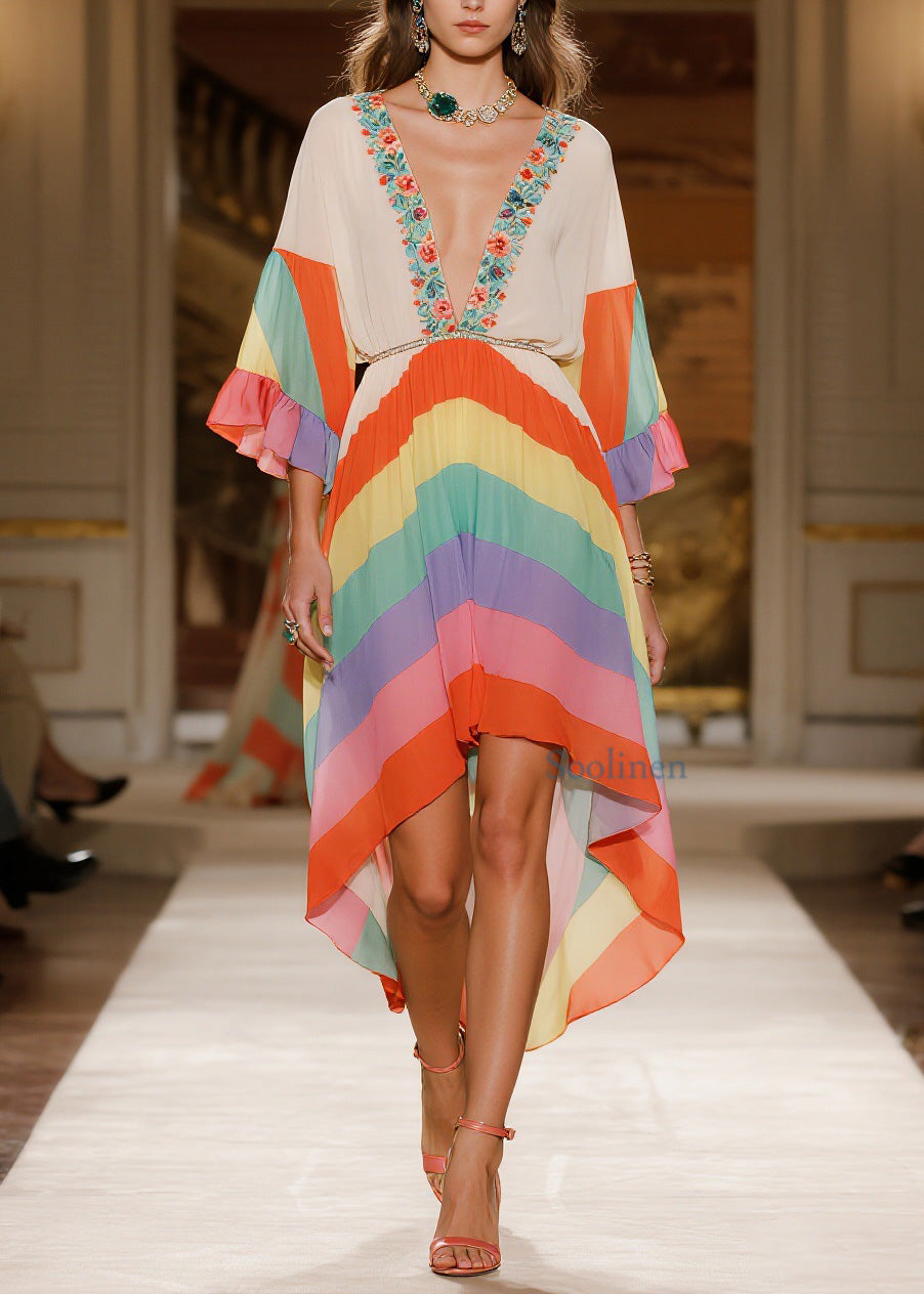 Fashion V Neck Print Low High Design Chiffon Dress Summer