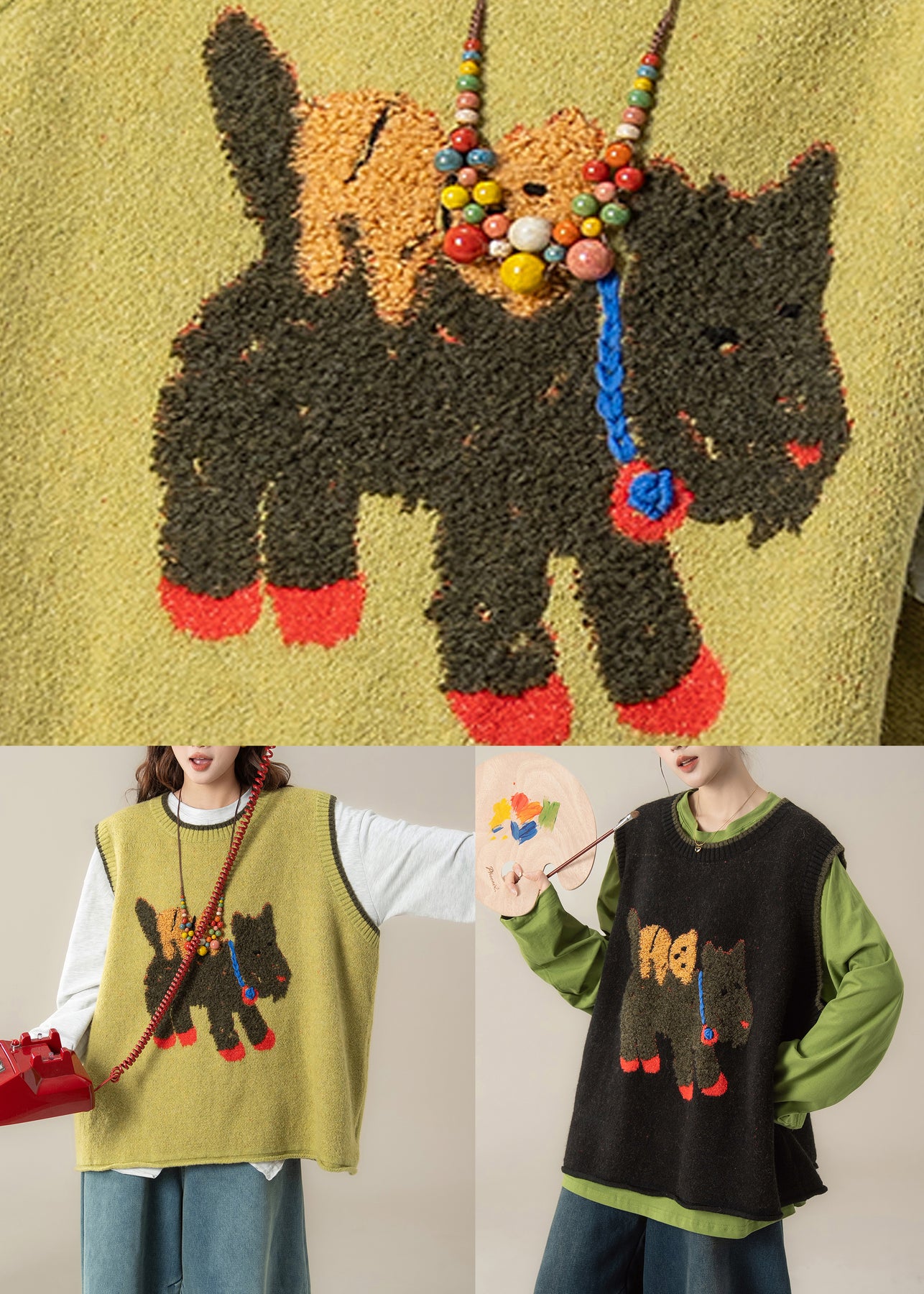 Stylish Black O-Neck Thick Cotton Knit Waistcoat Top Winter