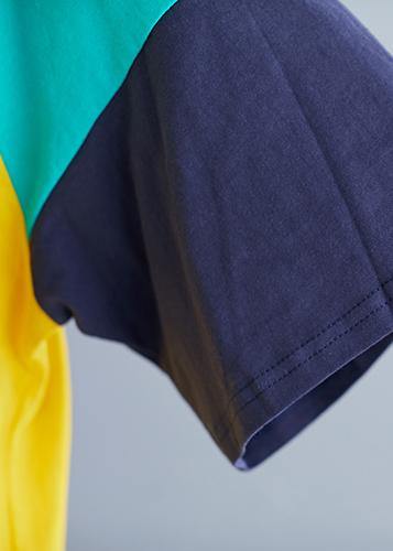 Style yellow patchwork cotton tunic top o neck baggy summer blouse - SooLinen