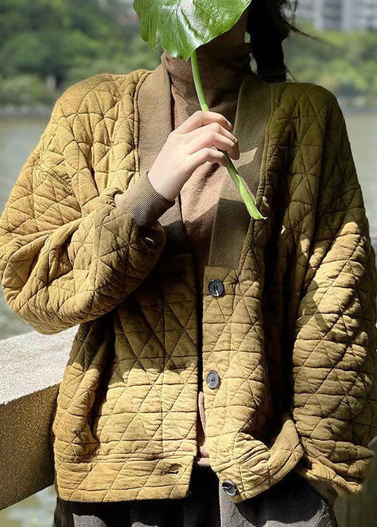 Style Gelb V-Ausschnitt Feine Baumwolle Gefüllte Lose Sweatshirts Top Winter