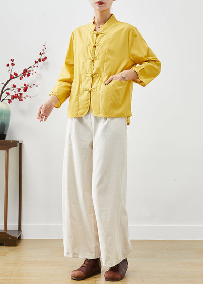 Vintage Yellow Stand Collar Chinese Button Cotton Two Pieces Set Fall