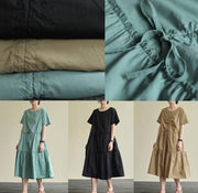 Sommerkleider aus 100 % Baumwolle mit O-Ausschnitt und Kordelzug. Stoffe grün Art Dresses
