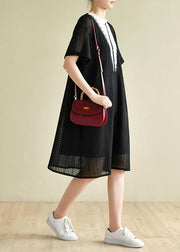 Beautiful black striped Wardrobes patchwork A Line Dress - SooLinen