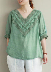 Elegantes Leinen-Tunika-Oberteil mit V-Ausschnitt und halbärmeligen Fotografie-grünen, aushöhlenden Oberteilen